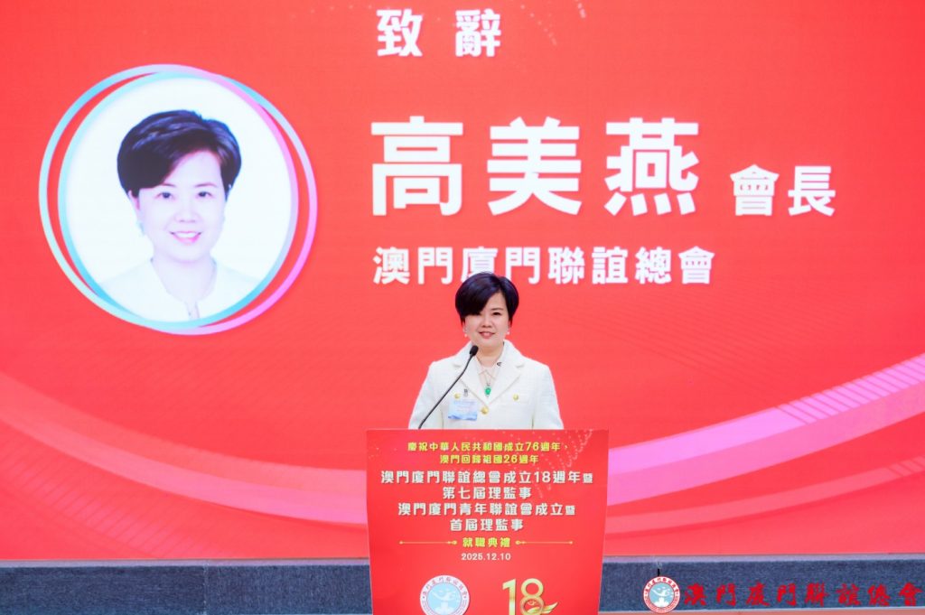 會長高美燕致辭表示,該會始終堅守“愛國愛澳愛鄉的創會宗旨,深耕澳廈聯結18載。多年來,聯誼會凝聚鄉賢,搭建兩地經貿、文化、體育交流橋樑,積極參與兩地宣傳推廣、融入大灣區建設,堅定擁護“一國兩制”,為澳門繁榮穩定和家鄉發展貢獻了社團力量。未來將繼續堅守初心、厚植服務、創新發展。