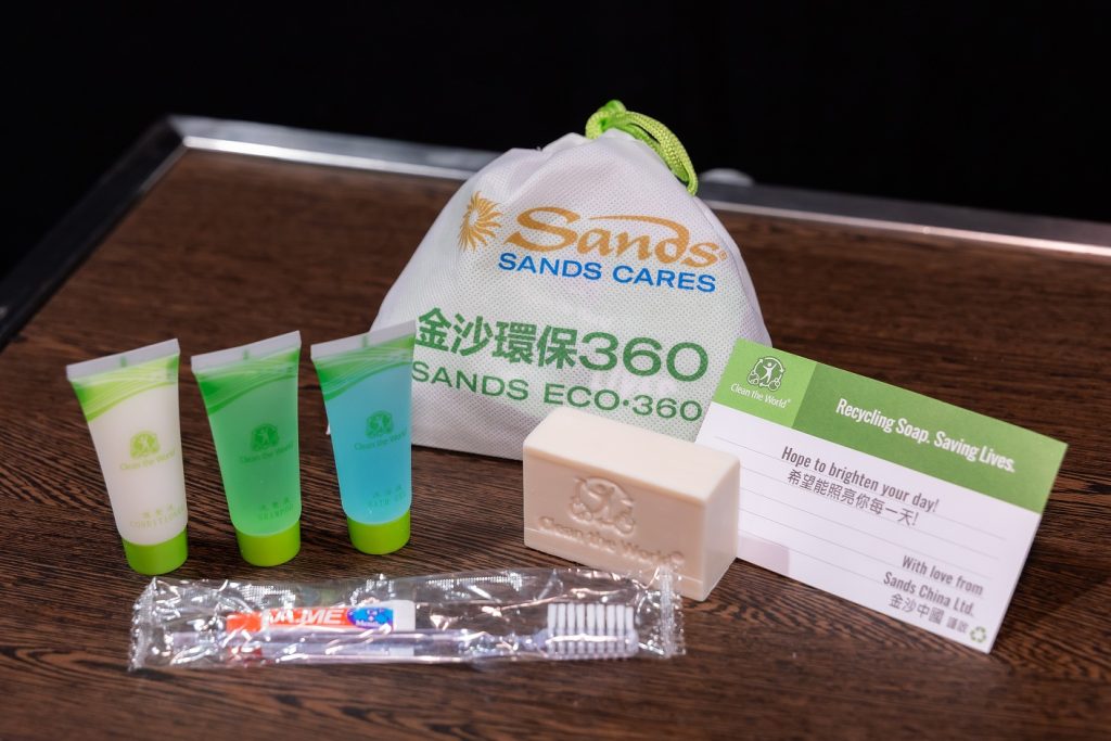 在酒店客人退房後,金沙中國將肥皂交由潔世回收,並透過再製造流程進行消毒處理,從而延長了原本會被丟棄的酒店用品的使用壽命。除了肥皂外,每個福袋還包含洗髮水、護髮素、沐浴露、牙刷、牙膏,以及一張印有金沙中國和潔世送上的寄語卡片,並以可重複使用的不織布袋盛載。