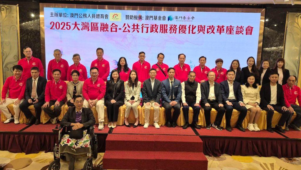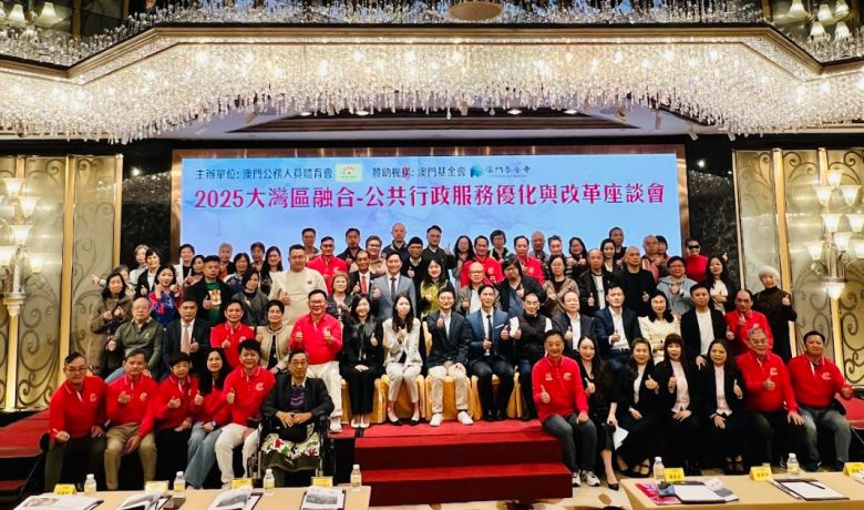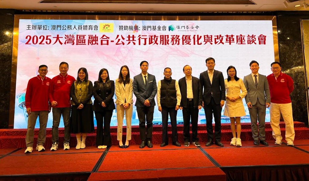 【環球新聞報訊】由澳門公務人員體育會主辦,澳門基金會贊助之2025大灣區融合-公共行政服務優化與改革座談會日前假座凱旋門酒店四樓宴會廳舉行,行政公職局代表梁少峰處長、市政署代表鄺漢民處長、教青局代表曹玉蘭代處長,澳門理工大學教授婁勝華、執業大律師程嘉雯、前市諮委陳溥森、深圳寶安區人大代表陳振宇、世邦傢俬建材城董事長侯沐天博士及公務人員體育會會長葛萬金擔任主講及分享嘉賓,與近百位出席者和公職團體代表分享議題及互動,場面熱鬧.