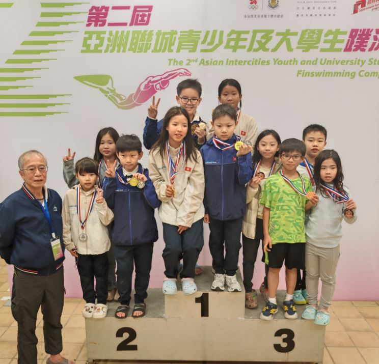 本次參賽獲理事長蘇國安及澳門國際潛水中心贊助蹼泳器材,海安水上安全醫療急救中心負責賽前培訓安全保障,為運動員備賽提供堅實後盾。在項目競賽中,協會運動員表現亮眼:鍾浩東、何芯瑩分別在50米短雙蹼及100米短雙蹼拿下兩個單項季軍;羅浚仁在50米短雙蹼項目斬獲季軍;此外,鍾浩東、羅浚仁、袁希蕾和何芯瑩組隊參加4×50米短雙蹼接力項目,憑藉默契配合最終斬獲團體季軍。