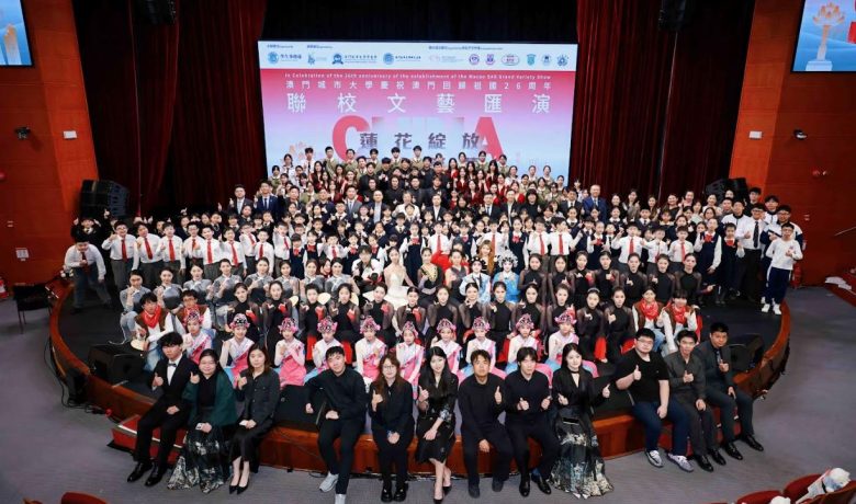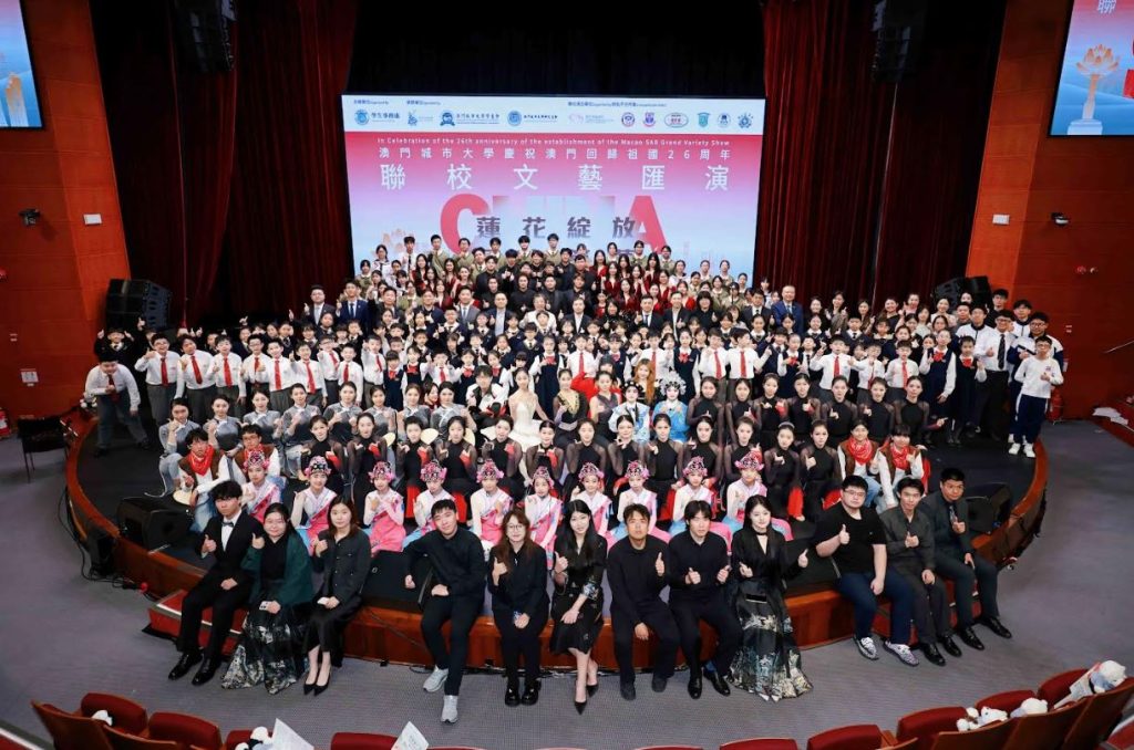 【環球新聞報訊】為熱烈慶祝澳門回歸祖國26周年,弘揚愛國愛澳核心價值,澳門城市大學於2025年12月12日晚在氹仔校區文化中心劇場舉辦「蓮花綻放·同心築夢」慶祝澳門回歸祖國26周年聯校文藝匯演。活動匯聚城大藝術團及珠澳多所高校和中小學的藝術團體,以多元藝術形式共賀回歸盛事,展現澳門中西文化交融的獨特魅力與青少年的蓬勃朝氣。