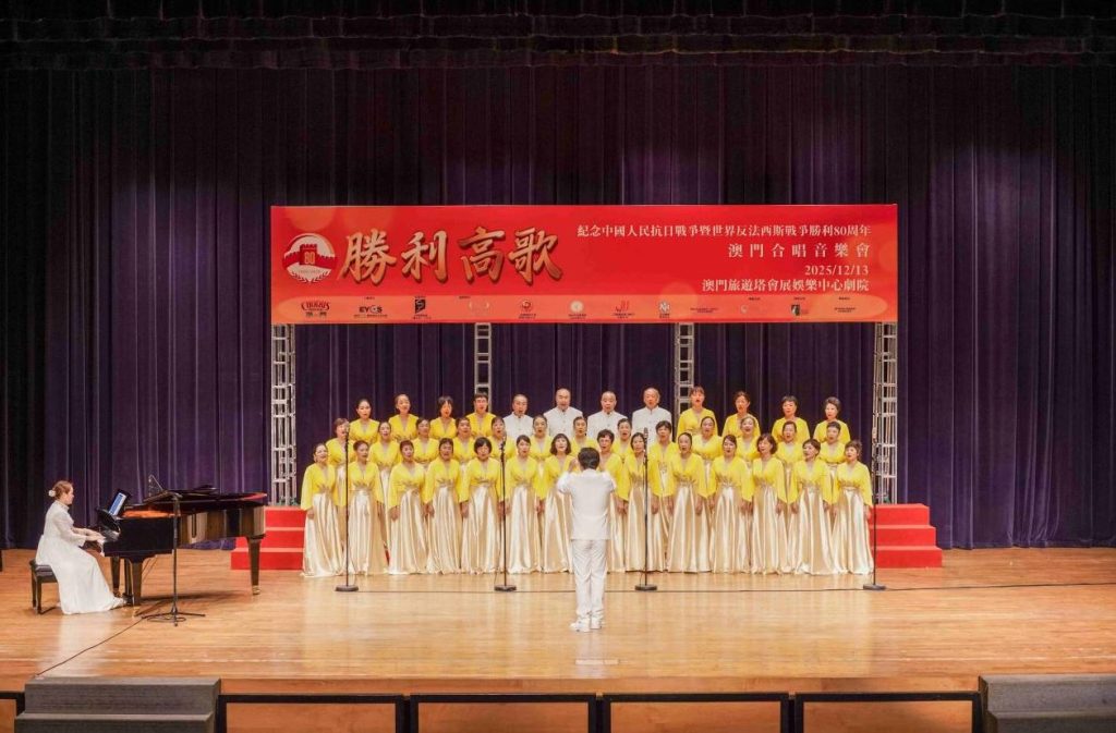 【環球新聞報訊】為紀念中國人民抗日戰爭暨世界反法西斯戰爭勝利80周年,由澳門文化發展基金贊助,澳門藍眼睛藝術交流協會主辦,特邀北京「老藝術家合唱團」攜手澳門及大灣區多個優秀合唱團體,於日前在澳門旅遊塔會展娛樂中心劇院舉行《勝利高歌》澳門合唱音樂會,以合唱之音重溫那段不屈不撓的崢嶸歲月。