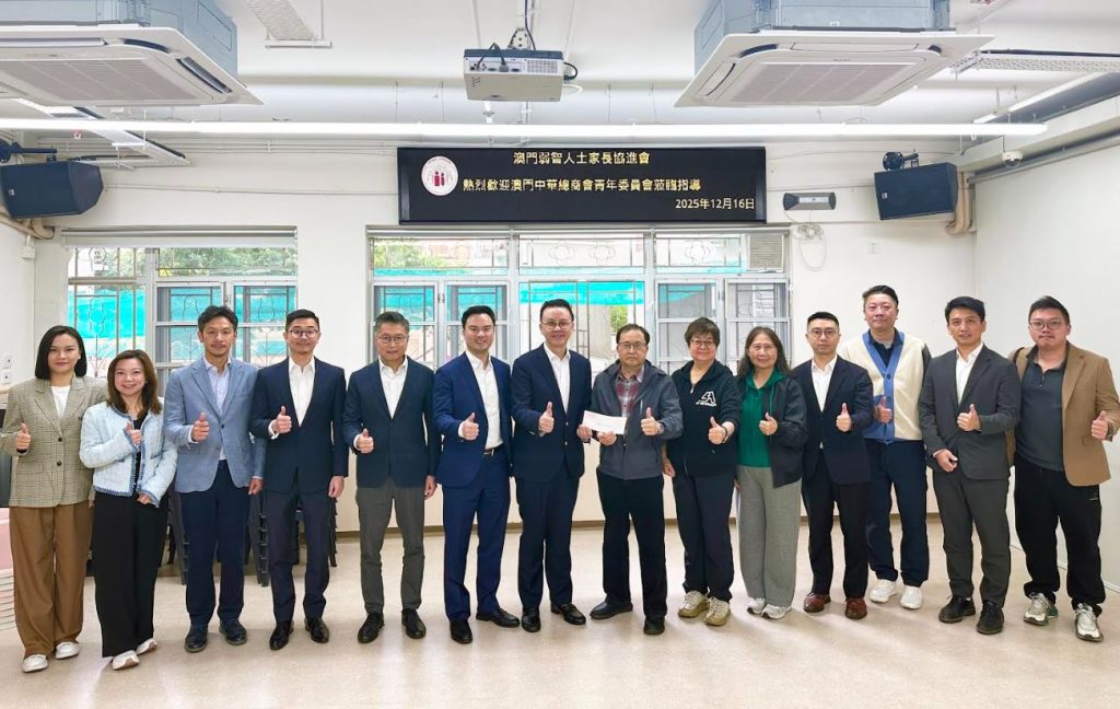 【環球新聞報訊】澳門中華總商會青年委員會於12月16日上午十一時在中總副理事長莫志偉、青委會主任崔天立的帶領下,一行十一人拜訪澳門弱智人士家長協進會,把日前舉辦「慶祝中華人民共和國成立七十六周年、澳門特別行政區成立二十六周年——澳門青年慈善高爾夫球賽」籌得善款十萬澳門元捐予家協會,用於該會慶祝成立三十五周年的經費。捐贈儀式在家協會轄下的曙光中心舉行,一行獲家協會會長曾德岱、理事長劉小虹、監事長黃錦芳等負責人的熱情接待。