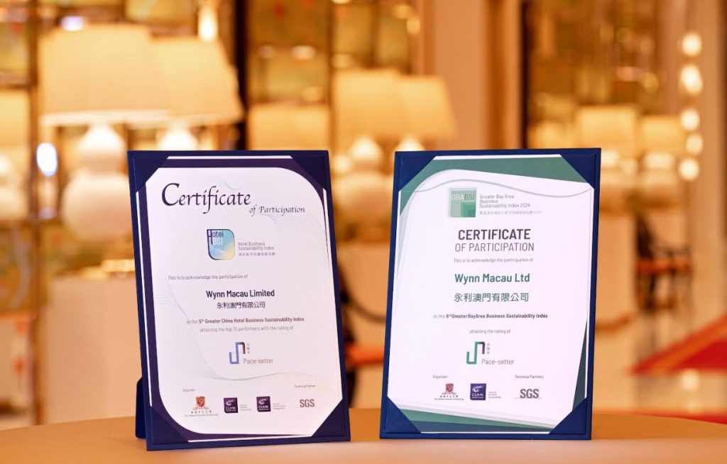 永利已連續四年分別被評為「大中華區酒店可持續發展指數」前十企業及「大灣區企業可持續發展指數」前二十名企業。今年,永利的指數得分較其他參評企業的平均得分分別高出26%和19%;而「大中華區酒店可持續發展指數」得分與首年相比更躍升近40%,彰顯永利在持續提升營運效率及深化可持續發展實踐的堅定承諾,樹立了大中華區酒店業界和大灣區企業的標桿典範。