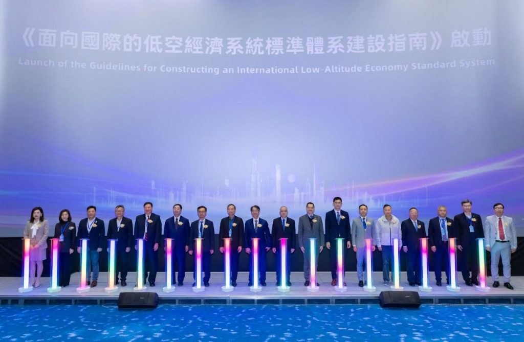 會上重磅發佈《面向國際的低空經濟系統標準體系建設指南》,並舉行啟動儀式。粵港澳大灣區標準創新聯盟低空經濟標準委員會召集人、澳門科技大學創新工程學院韓子天教授詳細介紹《面向國際的低空經濟系統標準體系建設指南》,呼籲構建統一、分層、協同的國際低空經濟標準體系,破解標準碎片化難題,為低空活動的安全運行與跨區域協同發展提供堅實保障。澳門特別行政區行政會委員、澳門管理學院唐繼宗院長,IEEE消費技術協會標準委員會曾劍鋒主席,澳門科學技術發展基金行政委員會余雨生主席,澳門中聯辦經濟部朱道陽調研員,澳門特別行政區政府經濟及科技發展局陳祖榮副局長,澳門特別行政區交通事務局李穎康副局長,中國科學院院士、蘭州大學大氣科學學院黃建平教授,國家精準農業航空施藥技術國際聯合研究中心主任、華南農業大學人工智能學院蘭玉彬教授,粵港澳大灣區標準創新聯盟低空經濟標準委員會主席、澳門科技大學澳門系統工程研究所所長伍乃騏講座教授,華南理工大學計算機學院院長、歐洲科學院院士陳俊龍教授,香港生產力促進局新型工業化部單銘賢經理,澳門生產力暨科技轉移中心李浩寧經理,深圳市無人機行業協會楊金才會長,澳門低空經濟協會金輝會長,珠海市市場監督管理局(知識產權局)鄧未副局長,深圳市標準化協會但丹秘書長,以及澳門科技大學副校監、校長李行偉講座教授,創新工程學院韓子天教授等嘉賓共同啟動該指南,標誌著國際低空經濟標準體系建設邁入新階段。