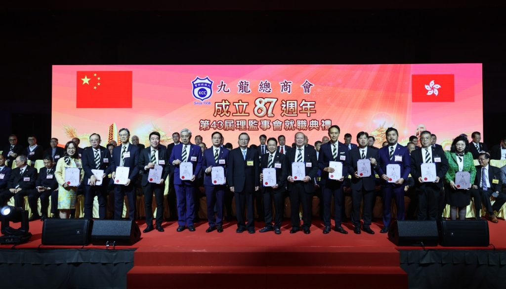 【環球新聞報訊】12月18日,九龍總商會假香港灣仔會展中心舉辦成立87周年暨第43屆理監事就職典禮圓滿舉行。梁金塘榮膺理事長,李光華任監事長。活動邀得商務及經濟發展局局長丘應樺,行政會議召集人葉劉淑儀,中央政府駐港聯絡辦九龍工作部副部長郭長勇、台灣事務部副部長肖洪,立法會議員邵家輝、陳恒鑌,香港再出發大聯盟秘書長譚耀宗等共同主禮。出席活動的九龍總商會首長還有副理事長锺煜榮、周錦威、李豐年、林煒橋、伍培坤、陳新發等。