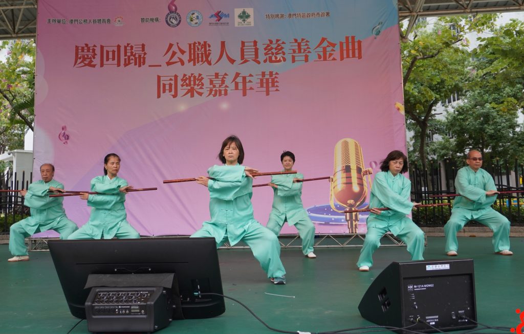 【環球新聞報訊】為慶祝澳門回歸祖國26週年,傳承愛國愛澳精神,增強公職人員凝聚力與向心力,澳門公務人員體育會聯同公職足協、公職籃協和公職智庫等多個團體於本月中在祐漢公園廣場舉辦了“慶回歸_澳門公職人員慈善金曲同樂嘉年華”活動。現場氣氛熱烈,不僅呈現了豐富多彩的文體盛宴,更以公益之舉踐行社會責任,主辦單位向澳門民康會捐贈3000元善款,用於支持該會明年各項公益活動的開展。