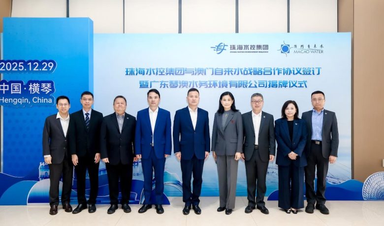 【環球新聞報訊】12月29日,珠海水控集團與澳門自來水戰略框架協議簽約儀式暨廣東琴澳水務環境有限公司揭牌儀式在橫琴粵澳深度合作區隆重舉行。澳門中聯辦經濟部部長劉德成,珠海市政府副市長胡新天,橫琴粵澳深度合作區執委會副主任張國基,澳門特區海事及水務局局長黃穗文,珠海市水務局黨組書記、局長許蓓蕾,珠海水控集團黨委書記、董事長孫成,澳門自來水董事總經理范曉軍等代表出席,見證兩家深耕水務領域的標杆企業攜手,推動琴澳水務合作從傳統供需保障邁向全鏈條、高品質一體化發展的全新階段。