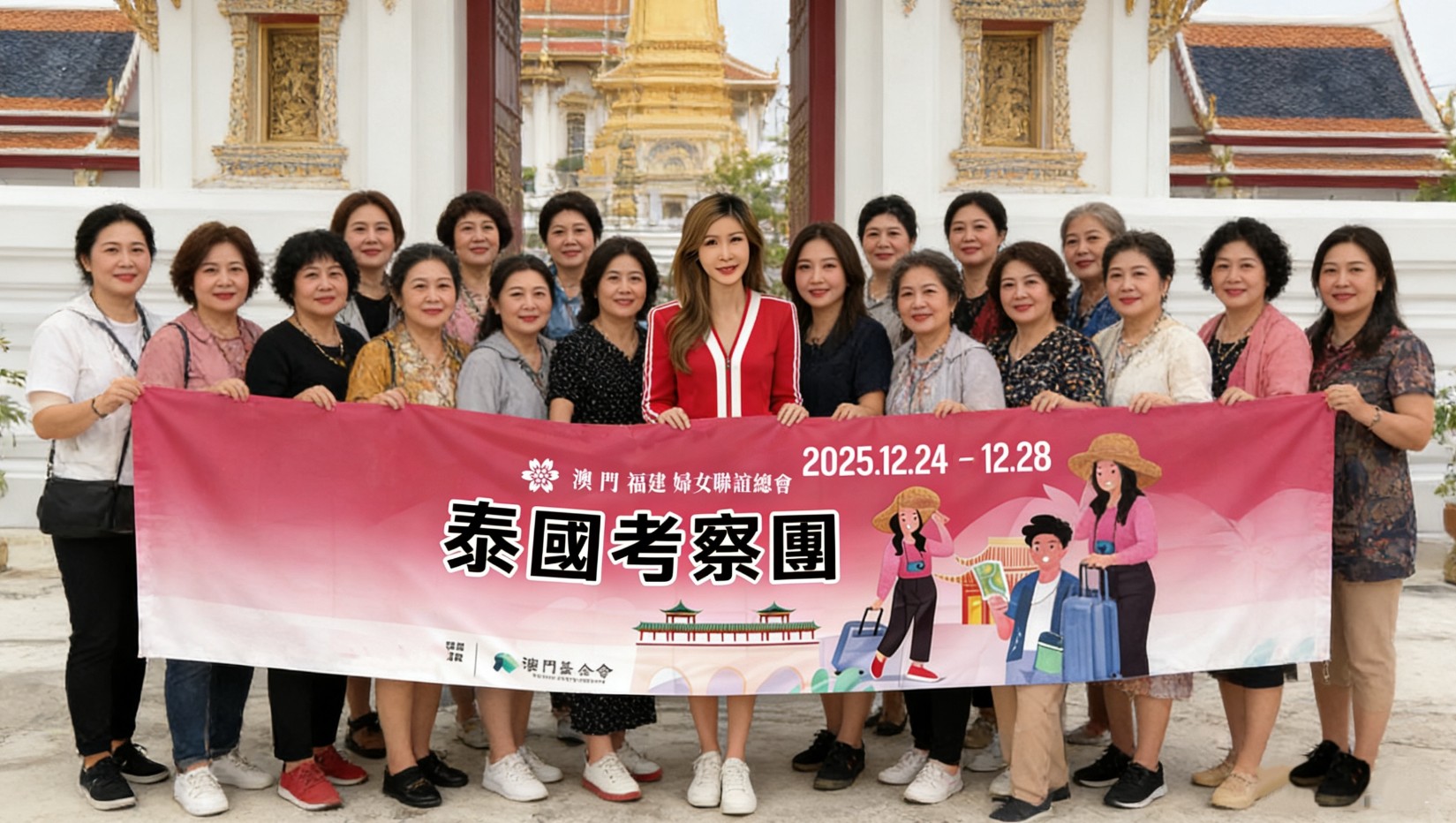 【環球新聞報訊】澳門福建婦女聯誼總會於 2025 年 12 月 24-28 日出發前往泰國為期五天四夜考察交流。本次活動由謝路生會長擔任團長,率領澳福婦一行 19 人參與。參與本次活動的人員包括副理事長何綿綿、柯程程、黃美珠、劉祖花、高冬梅等人。