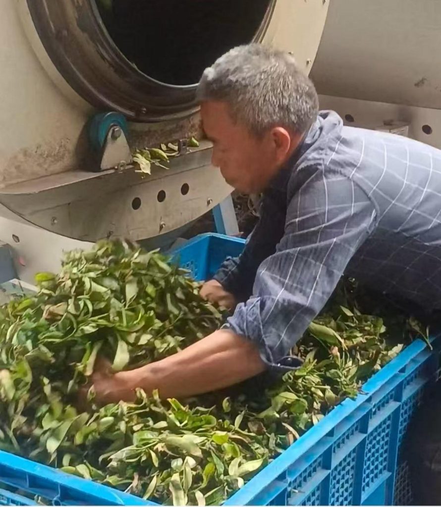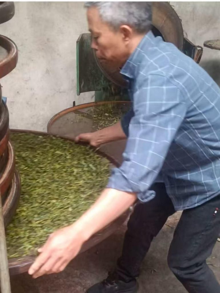 前期工序完成後,便對茶葉進行殺青,即用250度左右的高溫炒至熟透,散發更清純茶香;之後是揉捻,即揉捻成條形;緊接着初焙,即高溫猛火焙至表面微幹、出爐納涼後渥堆定型;再到複焙,再攤篩文火焙至全乾,這樣茶葉初步就做好了。完成上述工序後,可挑選出精茶,再經過一至三次的焙火退火發酵,最後製成成品茶葉。