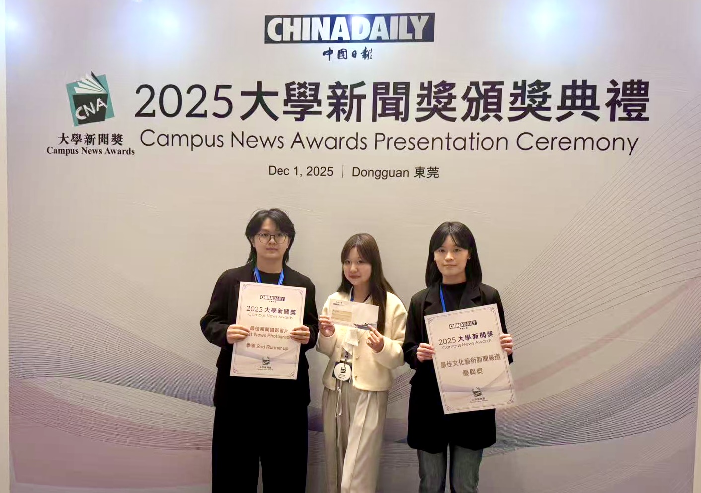 【環球新聞報訊】澳門大學社會科學學院傳播系學生於2025年“中國日報大學新聞獎”獲佳績。他們的畢業作品在數千份參賽作品中脫穎而出,獲得“中文組最佳文化藝術新聞報道優異獎”及“中英文合併組最佳新聞攝影圖片獎季軍”。