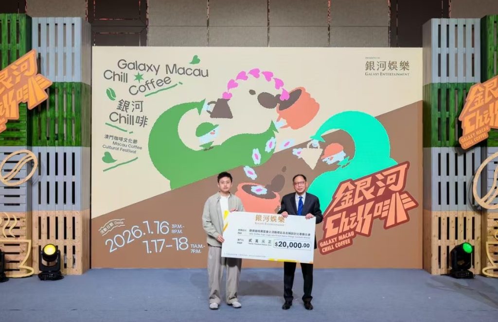 除了帶動咖啡相關產業的本地中小微企,為提升本次活動的品牌效應,以及促進本地青年創業者在品牌設計領域的發展,銀娛於活動前期與青創中心合辦標誌及名稱設計比賽,邀請本地設計團隊以創意和原創性角逐。勝出企業「樂所飛設計有限公司」憑其命名的「銀河Chill啡」及相關設計標誌,獲頒澳門幣20,000元獎金,其設計作品更全面應用於活動的宣傳物料及周邊紀念品中,以更鮮明的視覺形象強化展會品牌。更多有關「銀河 Chill 啡 」 澳 門 咖 啡 文 化 節 的資訊,請瀏覽官方網 頁 :http://galaxymacau.com/zh-hant/offers/dining/galaxy-macau-chill-coffee-festival-2026/。