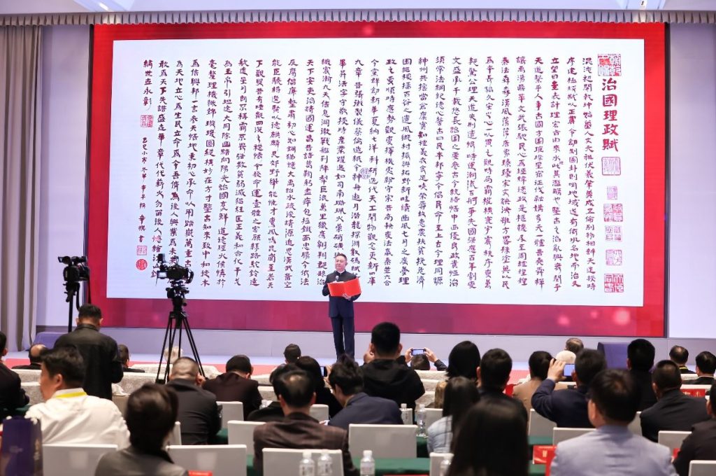 啟動儀式後,四輪莊重的贈書禮依次開展。何君堯、周瑞清、程瑜、白國慶等頒授嘉賓先後為近 60 家企業、機構及海內外學生代表鄭重頒授專著。其中中能低空經濟(深圳)有限公司董事長李瑞、化州市裕泰生物科技公司農夫子化橘紅董事長謝立明、東阿縣御寶葡萄酒有限公司董事長戴藝芬、廣州美亞科技發展有限公司董事長張雅娜、慧源同創科技集團有限公司董事長林前進、山東齊澤生物科技有限公司董事長吳以琳、全域數據信息安全發展研究院院長賴一陽、福建大芹陸宜酒業有限公司尹可為總經理、明生能源科技公司董事長黃明生、長歲樹水科技有限公司董事長廖友溢、上海太古本草中醫藥集團有限公司董事長高安鳳、相信這面旗文化傳媒公司董事長薛漢卿、中華籽粒莧研究院院長羅小雨、中華老字號國際認證中心董事長邱自琴、產城實業投資控股集團有限公司總經理李超輝分別代表所在機構接過著作。來自澳門學生代表蒯佳靜、巴拿馬學生代表陳偉傑、北京學生代表路景勝、南京學生代表沈修平、加拿大學生代表周清泉、香港學生代表程燁鑫表示,將認真研讀著作,帶著書中的思想智慧,為海外與內地的深度交流貢獻青年力量。