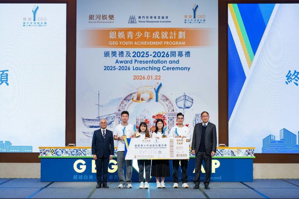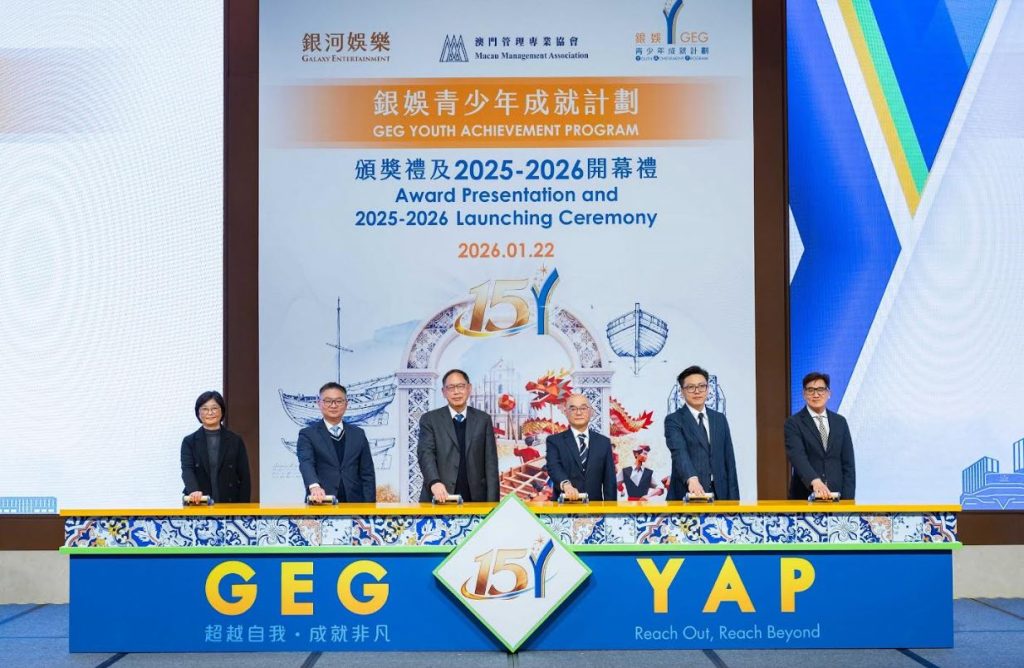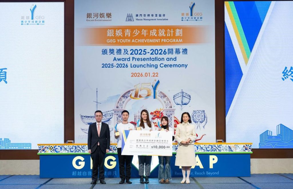 【環球新聞報訊】多年來,銀河娛樂集團(下稱「銀娛」)積極響應澳門特別行政區政府(下稱「特區政府」)「教育興澳、人才建澳」的施政方針,透過多元舉措推動人才培育工作,促進本澳青少年全人發展。自2011 年起,銀娛攜手澳門管理專業協會(下稱「管協」)合辦「銀娛青少年成就計劃」(下稱「成就計劃」),秉承「自我認識」、「關懷社會」、「事業發展」三大核心理念,為 18至 29歲本地青年提供多元培訓及跨界交流平台,至今吸引超過 3,600名學員參與。1月22日,銀娛假銀河國際會議中心舉行第 14 屆頒獎禮暨第 15 屆開幕禮,表彰學員過去一年的卓越成果,並為新一屆計劃揭開序幕。