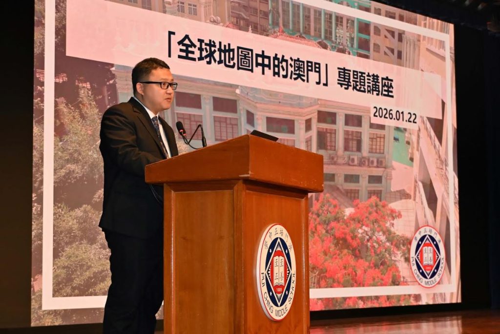 【環球新聞報訊】為進一步推廣澳門歷史與地理知識,弘揚「愛國愛澳」精神,由澳門科技大學圖書館、培正中學共同主辦的「『全球地圖中的澳門』進校園」系列活動,於2026年1月22日在培正中學正式開展。是次活動內容豐富多元,包括舉辦「粵港澳大灣區與澳門古地圖展」,展出30餘幅從17世紀至20世紀的珍貴古地圖,並舉行「全球地圖中的澳門」專題講座和《全球地圖中的澳門:澳門港城卷》贈書儀式。澳科大圖書館副館長顏石磊、高級特藏館員倪俊明、特藏組督導員張恒出席了該活動。