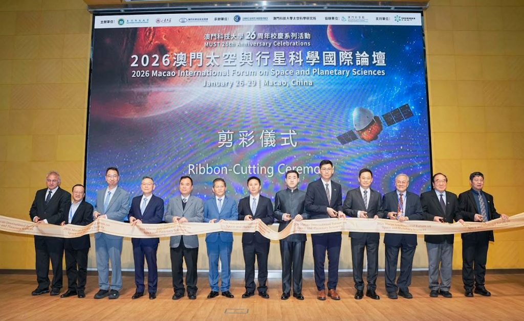 【環球新聞報訊】「2026澳門太空與行星科學國際論壇」開幕式於2026年1月27日在澳門科技大學N101大禮堂順利舉行。該論壇為澳科大成立二十六周年校慶系列活動之一。