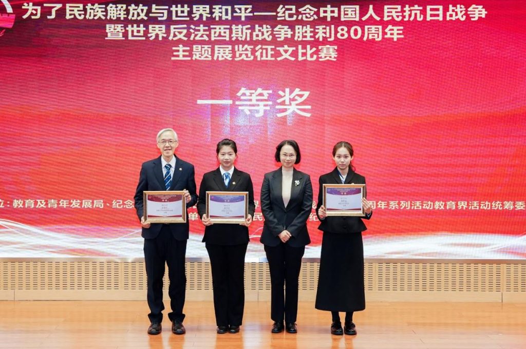 是次比賽由澳門特別行政區政府教育及青年發展局以及紀念中國人民抗日戰爭暨世界反法西斯戰爭勝利80周年系列活動教育界活動籌備委員會主辦。澳大共有18名學生獲得多項殊榮,包括兩項一等獎、一項二等獎、三項三等獎、五項優異獎及七項入圍獎;指導老師、澳大學生事務長彭執中亦榮獲指導老師一、二、三等獎。澳大師生赴北京參與比賽頒獎典禮,師生攜手登台,共獲殊榮,成果豐碩。