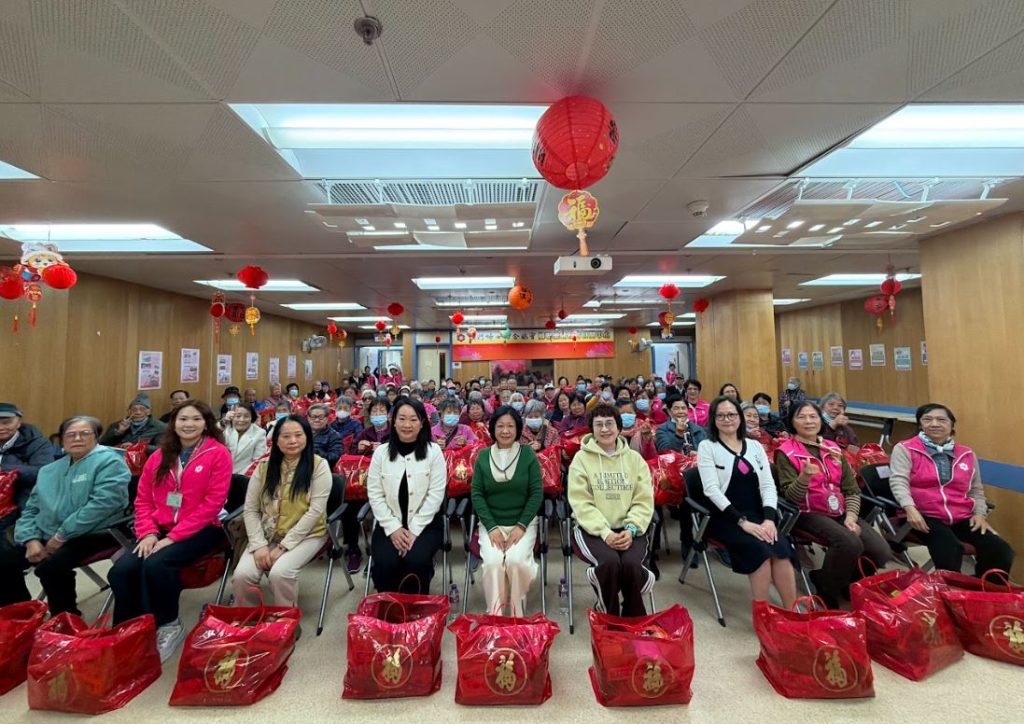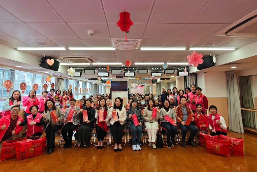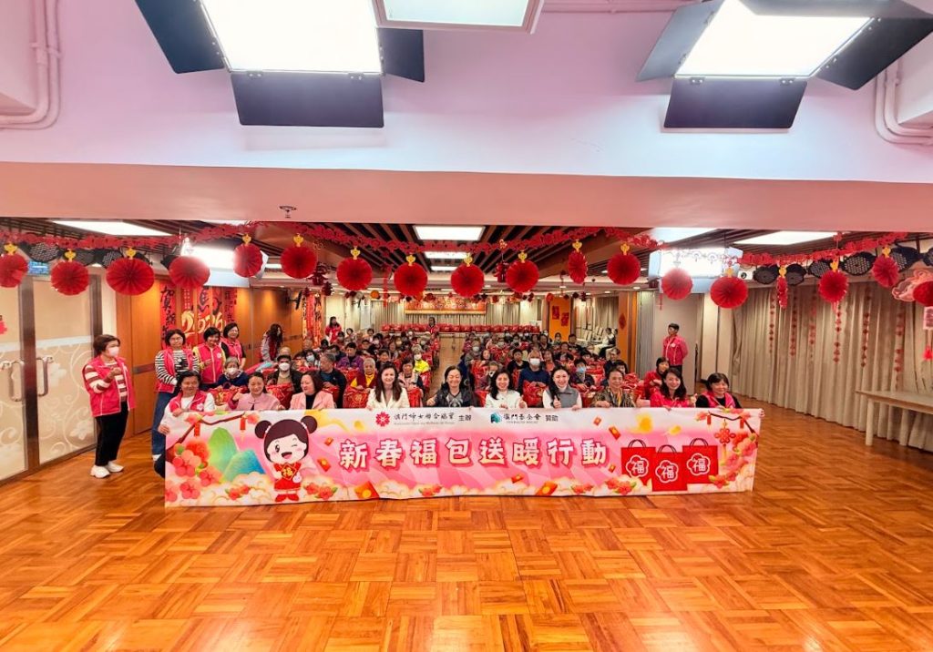 婦聯2月3日在婦聯樂頤長者日間中心、樂融家庭綜合服務中心、北區家庭服務中心、綜合服務大樓地下舉行“二○二六新春福包送暖行動”。婦聯監事長容永恩,副會長周霓、盧潔兒、何凱玲、黃潔貞,副理事長羅萍、歐陽月勝、何嘉欣,副監事長蔡彩蓮,向在場長者派送福包,送上新年祝福。