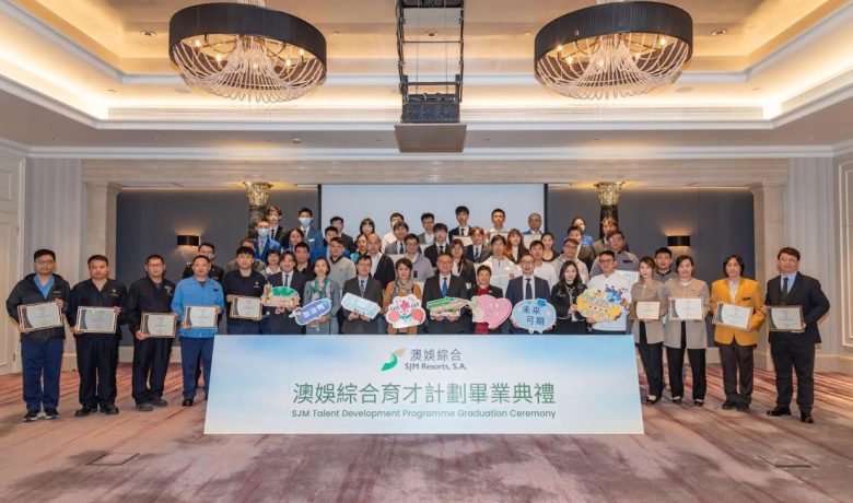 【環球新聞報訊】澳娛綜合度假股份有限公司(「澳娛綜合」)於2月3日假澳門上葡京綜合度假村舉行「澳娛綜合育才計劃」畢業典禮,邀請多位學員代表出席,表彰他們成功實現職業轉型,充分展現澳娛綜合在支持產業多元及推動本地人才發展方面的豐碩成果。澳門特別行政區政府勞工事務局局長陳元童、副局長陳子慧、澳娛綜合董事兼員工福利諮詢委員會主席梁安琪、澳娛綜合首席企業事務總監沈銘義,以及一眾管理層及嘉賓出席典禮,並為學員頒發證書,共同見證學員在不同培訓與實習計劃中的成長與收穫。