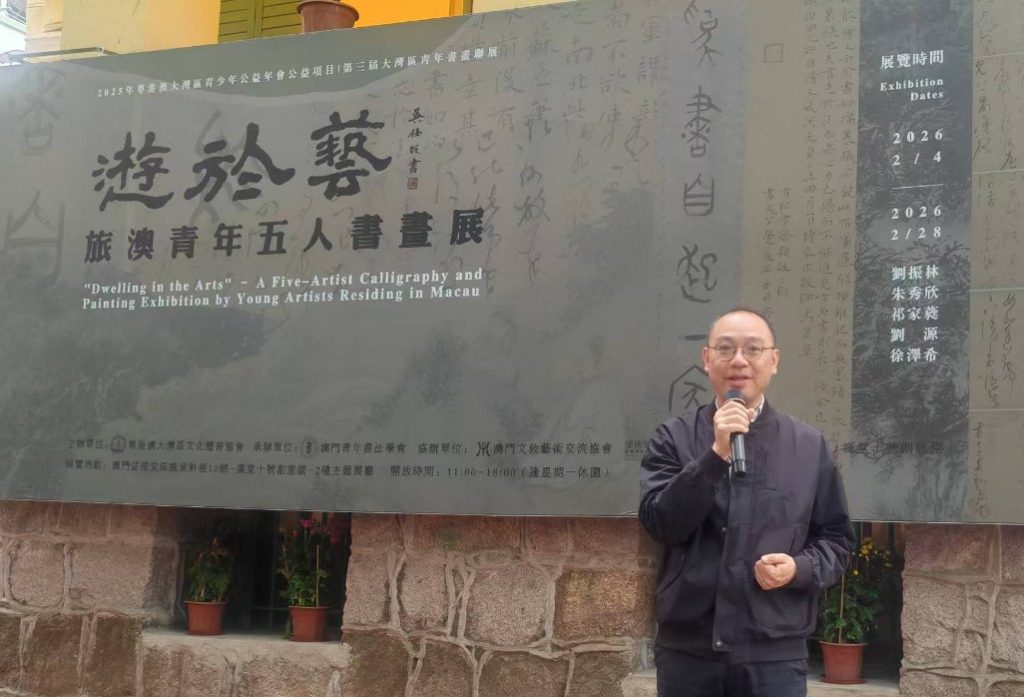 【環球新聞報訊】由粵港澳大灣區文化體育協會、澳門青年書法學會主辦的“遊於藝”旅澳青年五人書畫展於本月4日至28日在瘋堂十號創意園展出。本次展覽展出了劉振林、朱秀欣、劉源、祁家蕤、徐澤希五位旅澳青年藝術家的三十多幅優秀書畫作品。此次活動作為粵港澳大灣區青少年公益年會項目,得到了多方的支持。多位高校教授、藝術社團負責人出席了活動的開幕式,共同見證了旅澳青年藝術家的藝術風采。