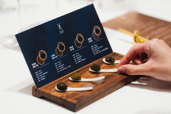 ▲從左至右為:「醇味卡露伽魚子醬」、「十年魚子三重奏」