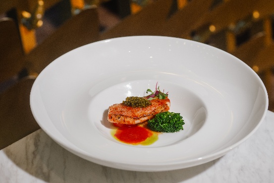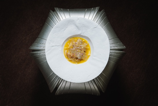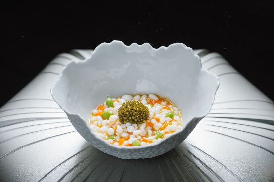 第三章節「啟新」,由解香樓壓軸呈獻「九年魚子秋月梨杏仁乳酪」。秋月梨的清甜、杏仁的溫潤與魚子醬的微鹹在口中形成柔和回甘,如春日落幕時的餘韻,恬靜而悠長,為這場貫穿古今、融匯四方的立春饗宴,寫下一個餘韻悠長的句號。