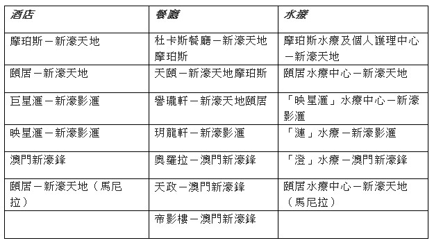 新濠旗下物業及設施共榮獲19項《福布斯旅遊指南 2026》五星榮譽,包括: