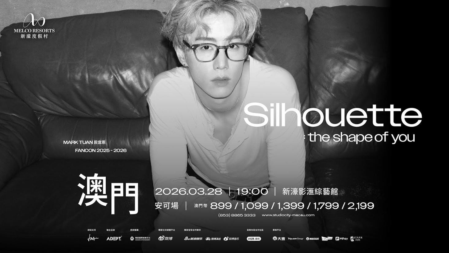 【環球新聞報訊】全球人氣男團 GOT7 成員、另類流行創作歌手段宜恩,將於 2026 年 3 月 28 日在澳門新濠影滙綜藝館舉行個人巡迴演唱會 — MARK 段宜恩《 Silhouette: The Shape Of You 》 FANCON 安可場 ,與粉絲一同見證他從偶像到獨立唱作人的音樂成長軌跡。 門票將於2026年2月13日中午12時正式公開發售,票價由澳門幣899至2,199不等。持票觀眾均可獲贈海報一張(隨機簽名)並有機會親身參與 Hi-Bye 歡送環節,為粉絲帶來超越期待的互動體驗。