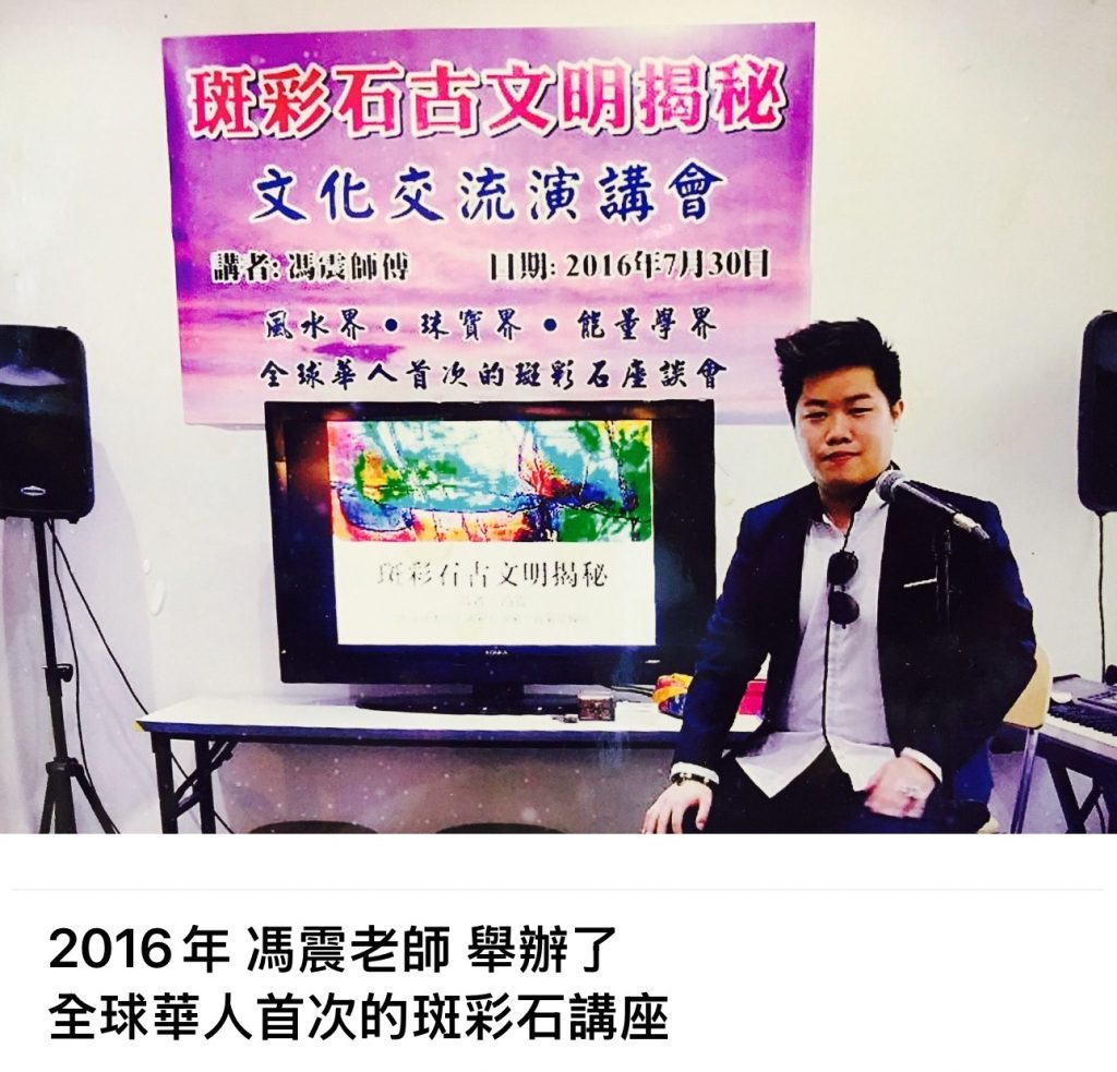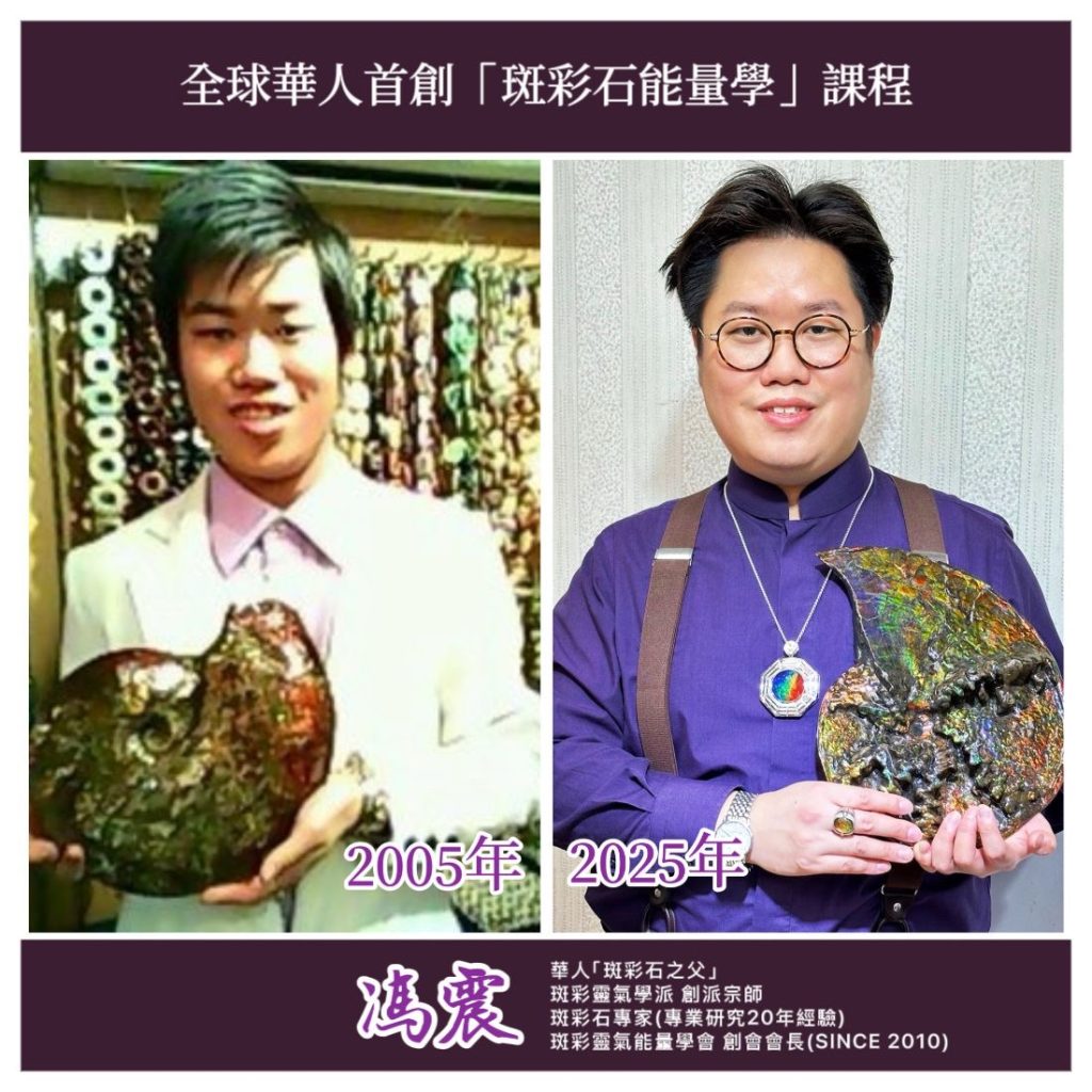 馮震老師創立並主講全球首創的「斑彩石能量學」課程,系統性闡述斑彩石的色彩層次、能量頻率與人體氣場之間的關聯,並延伸發展出斑彩靈氣與相關能量學應用。他亦多次獲邀擔任斑彩石及相關珠寶主題講座講師,並於電視及媒體節目中分享斑彩石知識與易學觀點,令更多大眾認識這種具獨特能量的寶石。
