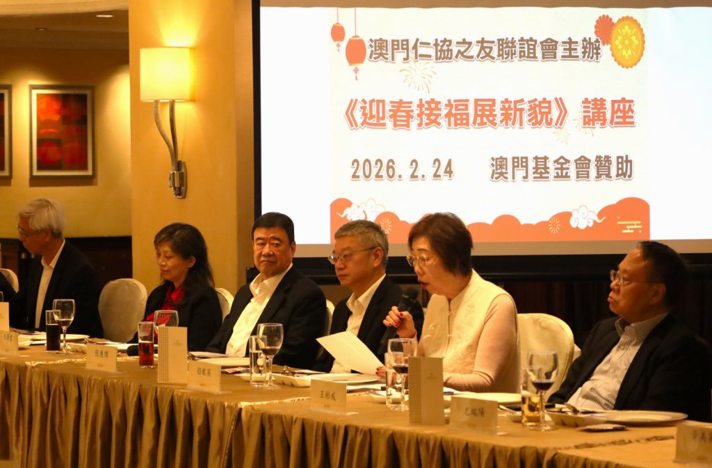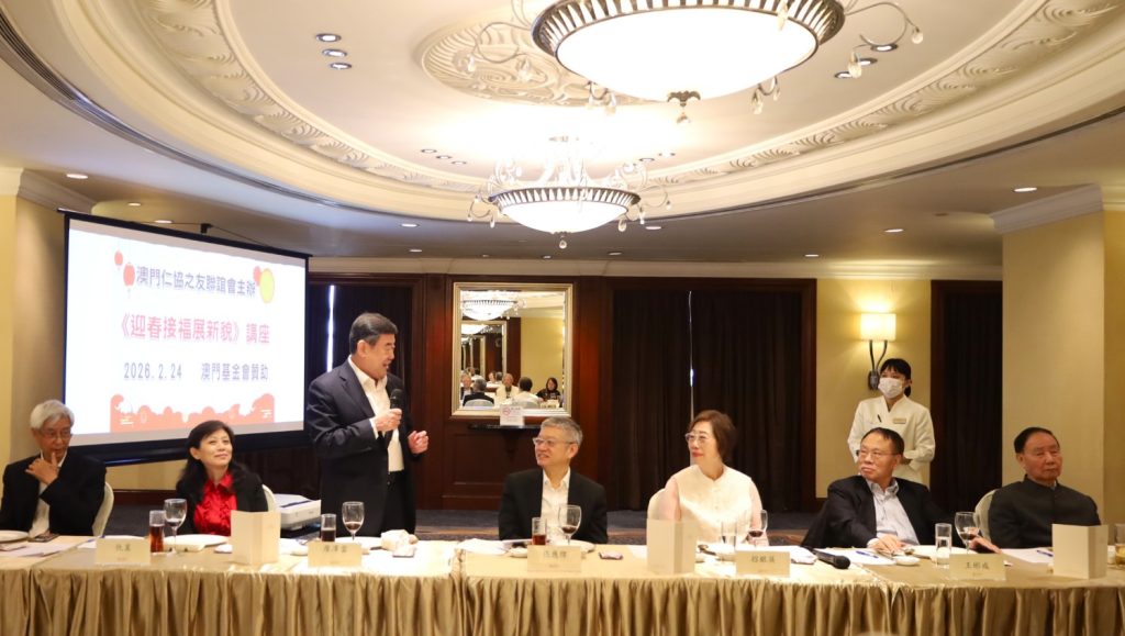 【環球新聞報訊】仁協之友於2月24日中午假皇都酒店維凱廳舉行「迎春接福展新貌」新春講座,講座由常務副會長梁慶庭主持,理事長招銀英作會務報告,會長廖澤雲就主題進行了發言。中聯辦副主任張應杰、協調部部長仇昱,仁協負責人賀定一、吳仕明、李沛霖、冼為鏗、梁樹森、王彬成、李向玉、林笑雲、孫恩光、梁勵、楊秀雯、尤端陽、吳培娟、姚鴻明、梁玉華、黎世祺、黎振強、陳錦鳴、黃耀榮等出席。講座獲澳門基金會贊助。