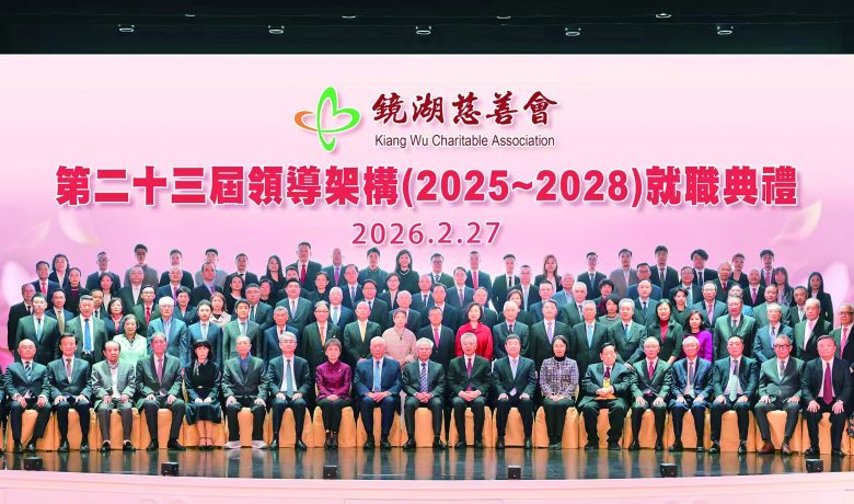 【環球新聞報訊】鏡湖慈善會於2月27日晚上7時假永利皇宮宴會廳,舉行慶祝成立155周年、第23屆領導架構就職典禮暨2026年春茗。行政長官岑浩輝,全國政協副主席、鏡湖慈善會永遠主席何厚鏵,中聯辦副主任張應杰,外交部駐澳特派員公署特派員卞立新,立法會主席張永春,社會文化司司長柯嵐擔任主禮嘉賓。