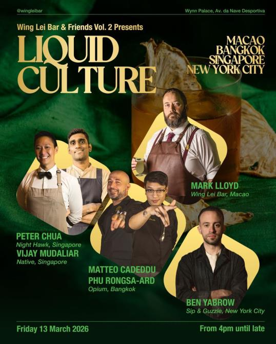 秉承永利吧「眾味合一」酒單所蘊含的友誼和全球連結精神,「Wing Lei Bar & Friends」第二篇將以更開闢的視野,透過「流動的文化:全球熱點如何重塑雞尾酒世界」為主題,讓澳門成為國際經典調酒之都與新銳力量的交匯點,在傳統、技藝與美學之間,展開一場充滿活力的靈感對話。
