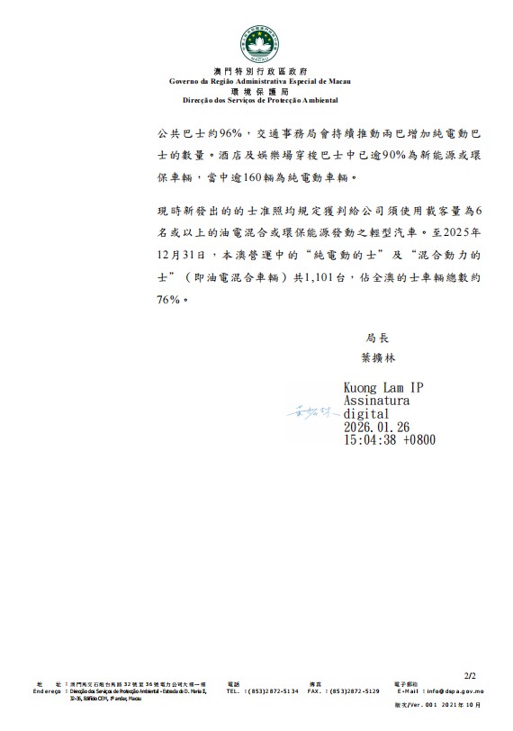 基於澳門土地有限、能源高度依賴外供、私人充電設施推進緩慢等實際情況,尤其在私人市場方面,車主轉換電動車仍面對車價、稅務誘因有限、充電設施不足及行政程序複雜等實際困難,故此有必要在堅持減碳方向的同時,進一步檢視政策工具是否足夠靈活、有力及貼近民情,以確保2035年目標能夠穩妥落實。