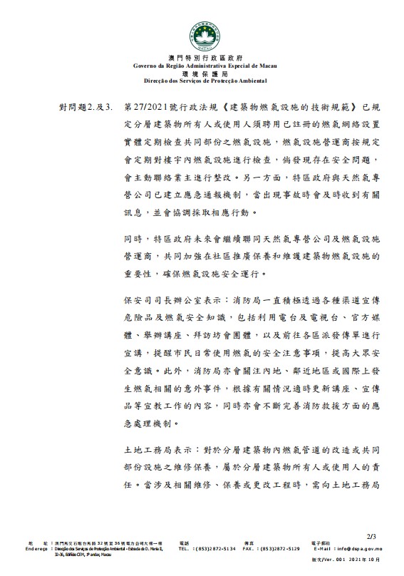 第二,政府已經設立跟進及完善燃氣安全及監管的跨司工作組,請問,政府未來如何加強公眾宣傳以及建立應急機制,提升公眾對燃氣洩漏等風險的認識及社會各界應對燃氣事故的能力,確保燃氣系統安全運行?