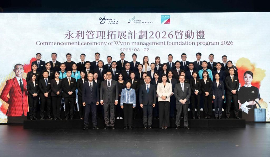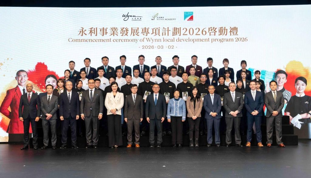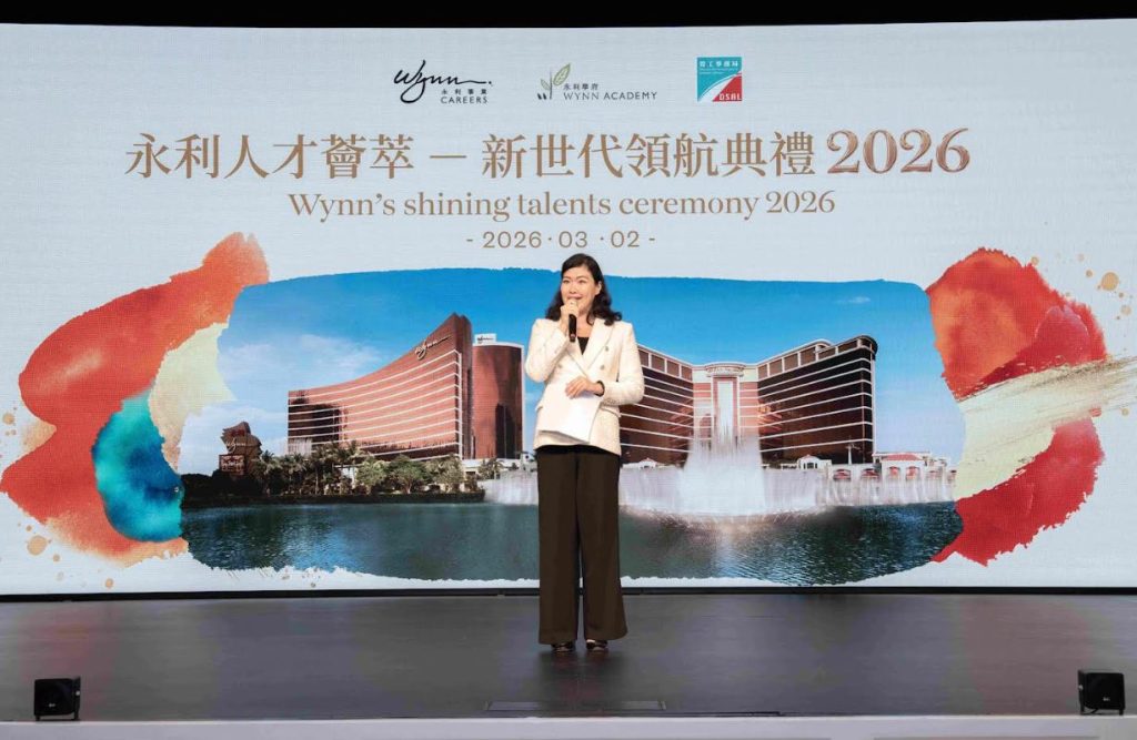 「永利人才薈萃 – 新世代領航典禮 2026」於 3 月 2 日假永利澳門宴會廳舉行,永利澳門及永利皇宮人力資源高級副總裁蘇家雯女士在致詞時表示,永利多年來一直致力深耕本地人才發展,透過完善的內部培訓機制為本澳居民提供全方位培訓及事業發展機會。自與勞工局合作推出專項招聘計劃以來,公司得以更有針對性地吸引年青新血加入酒店業,接觸的層面亦較以往廣泛,讓人才培訓計劃更具方向、更見成效,為澳門未來發展注入源源不絕的新動力。