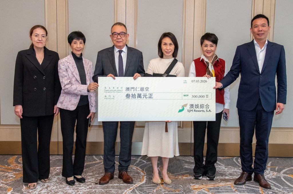 在日前舉行的捐贈儀式上,澳娛綜合常務董事何超鳳女士代表公司致送善款支票,澳門仁慈堂值理會主席飛安達先生代表接受。出席嘉賓包括澳娛綜合董事兼員工福利諮詢委員會主席梁安琪女士,以及受惠機構代表——澳門工會聯合總會監事長何雪卿女士、澳門街坊總會理事長陳家良先生及澳門仁慈堂秘書長盧茜儀女士。