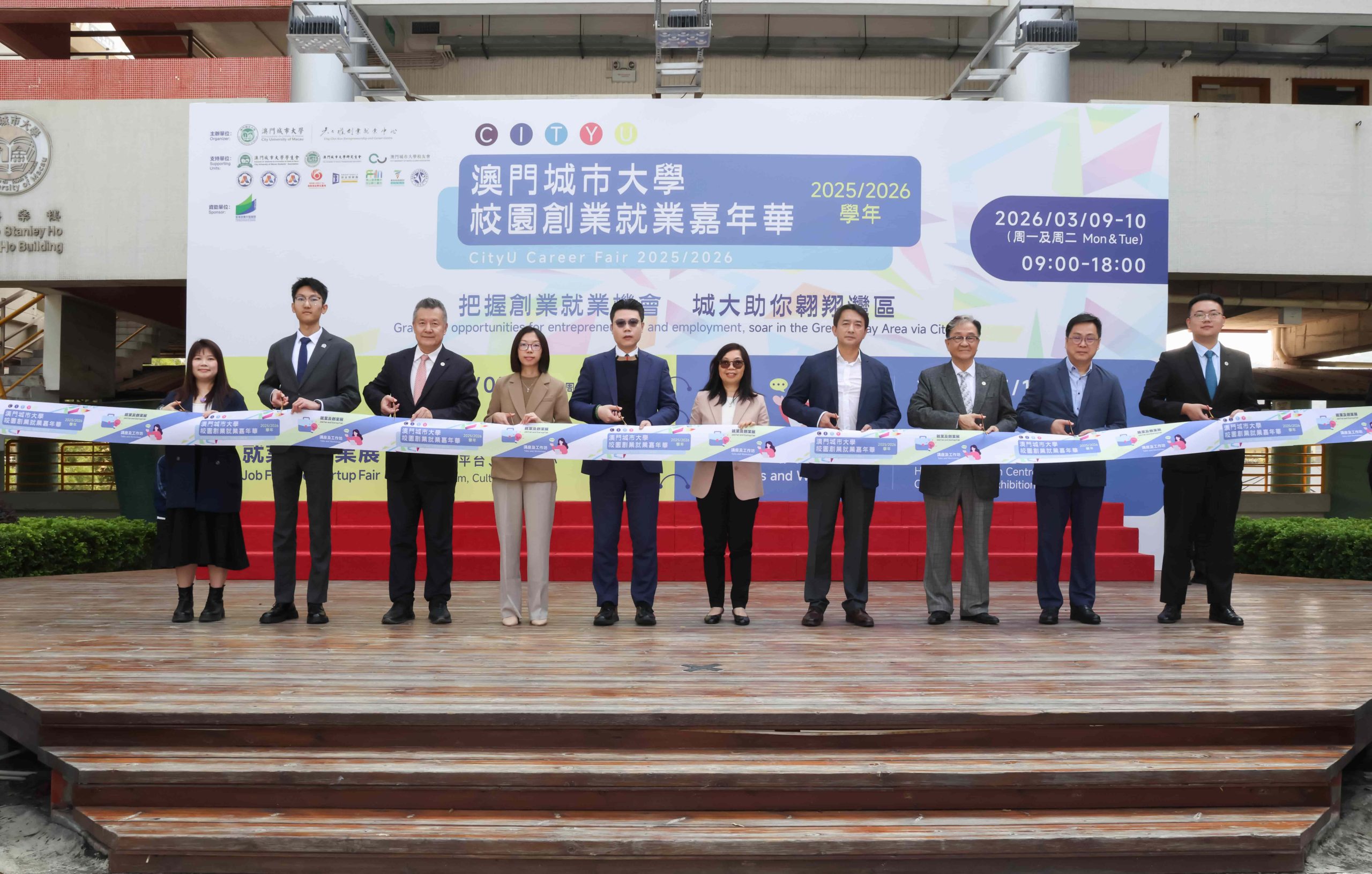 【環球新聞報訊】由澳門城市大學吳在權創業就業中心主辦的「2025/2026校園創業就業嘉年華」3月9日在城大氹仔校區揭幕。本次活動獲教育及青年發展局資助,並得到澳門城市大學學生會、研究生會、校友會,以及珠海、佛山、江門等地人力資源和社會保障局,粵港澳大灣區(廣東)創新創業孵化中心、珠西先進產業優秀人才創業創新園、佛山港澳青年創業孵化基地、惠州仲愷港澳青年創業基地、深圳市企業人力資源發展促進會等多個單位的支持。