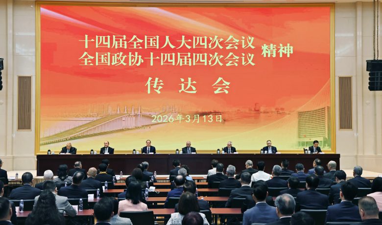 【環球新聞報訊】3 月 13 日下午,中央政府駐澳門聯絡辦公室召開 2026 年全國兩會精神傳達會。全國政協副主席何厚鏵、澳門特別行政區行政長官岑浩輝、中央政府駐澳門聯絡辦公室主任鄭新聰分別講話,崔世安先生、賀一誠先生出席。澳門地區全國人大代表團團長劉藝良、全國政協常委崔世昌分別傳達十四屆全國人大四次會議、全國政協十四屆四次會議精神。外交部駐澳門特派員公署特派員卞立新,中央政府駐澳門聯絡辦公室副主任呂玉印、張應傑參加。