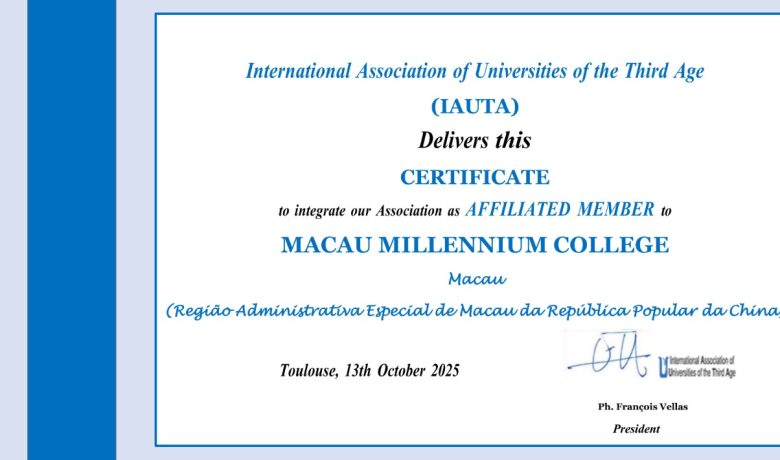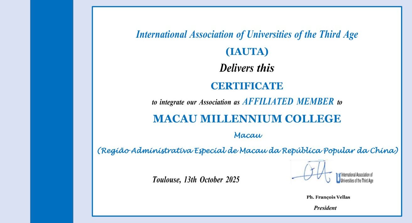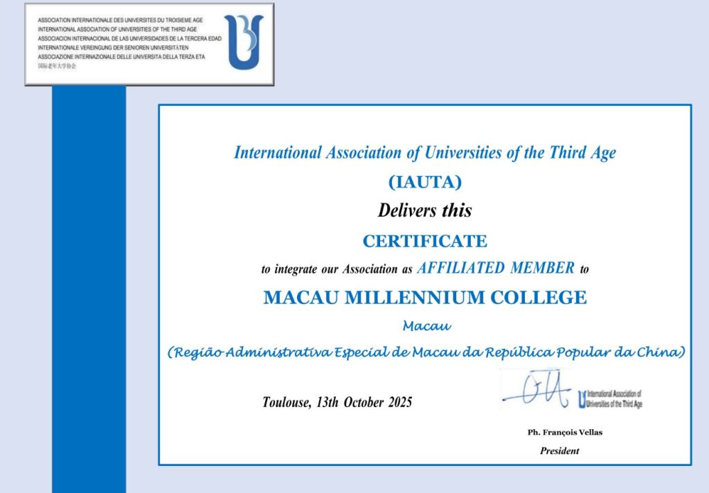 同時,中西銀齡書院正式獲准加入擁有五十餘年歷史的IAUTA,成為澳門地區首個獲該國際權威組織認可的長者教育機構。這不僅是對銀齡書院辦學理念、課程品質與社會貢獻的充分肯定,也將為其未來發展帶來更豐富的國際資源、學術交流平台及合作機遇。