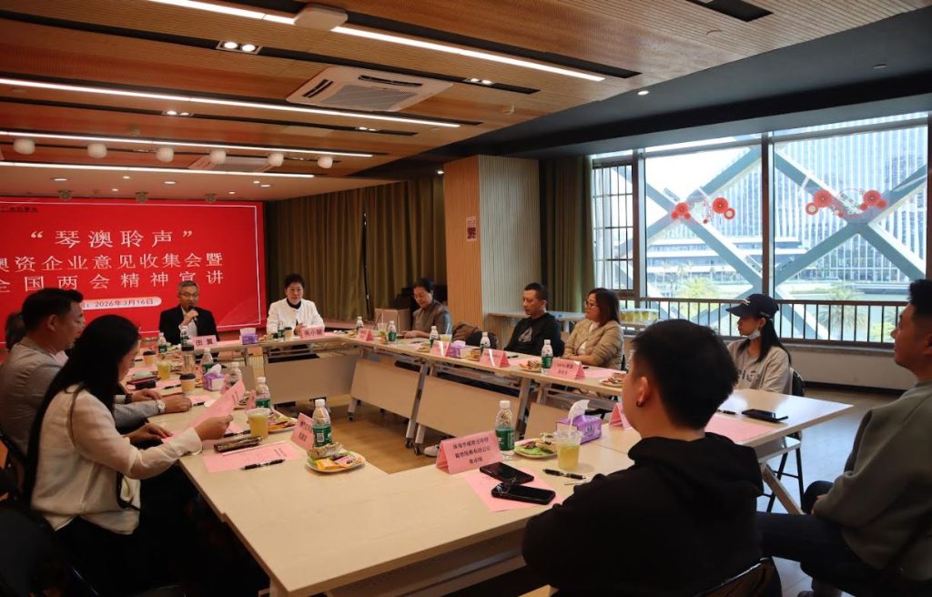 【環球新聞報訊】為精準服務橫琴粵澳深度合作區澳資企業,搭建琴澳溝通橋樑,3 月 16 日下午,由廣東省橫琴辦社會事務局指導,小橫琴社區黨委、小橫琴社區婦聯、小橫琴社區新時代文明實踐站及澳門街坊會聯合總會廣東辦事處小橫琴服務點聯合舉辦「琴澳聆聲」澳資企業意見收集會暨全國兩會精神宣講會。本次活動特邀澳門街坊會聯合總會會長、澳區全國人大代表吳小麗出席,與 11 家社區澳資商戶代表面對面交流,傾聽企業在橫琴經營發展中的真實聲音,並傳達剛剛閉幕的全國兩會重要精神。