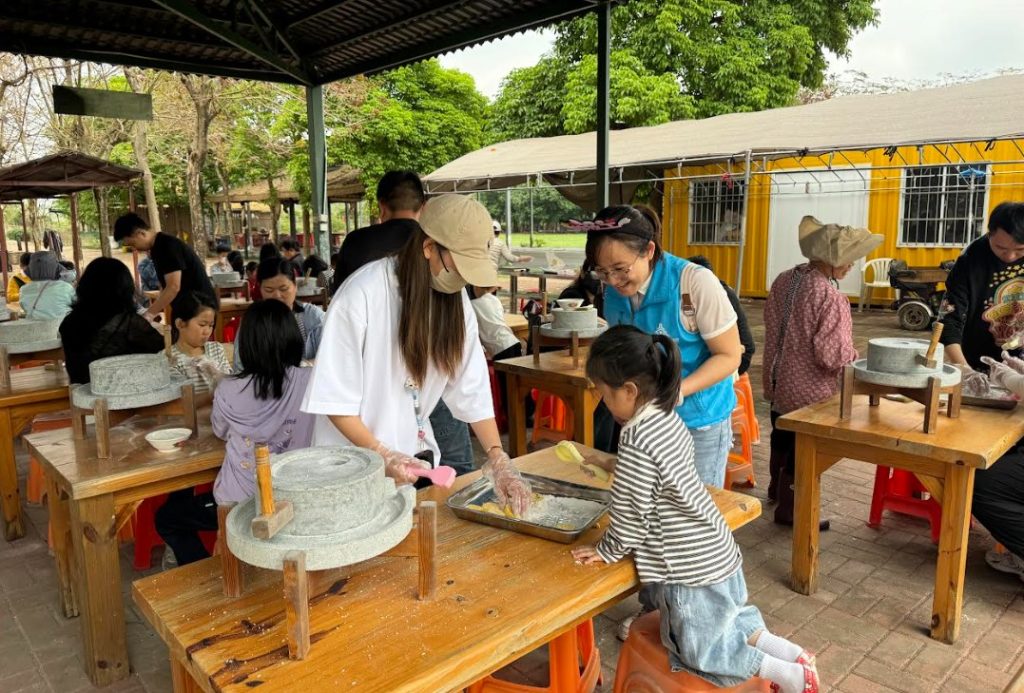 在隨後的食育環節中,親子家庭共同體驗了石磨米粉與蔬菜餅的製作過程。社工以優勢視角激發每組家庭的創造力,鼓勵家長放手讓孩子主導操作。石磨轉動之間,不僅傳遞著傳統耕種智慧,也讓澳門親子在親身勞作中建立起對鄉土文化的具體認知。此環節中,幾長輩的經驗優勢尤為突出,他們熱心為年輕父母傳授經驗,家庭之間互幫互助,其樂融融。