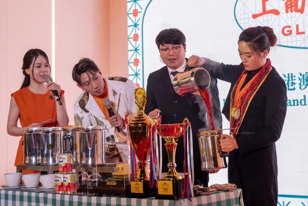 除廚藝交流外,澳娛綜合亦推動飲品文化的分享與傳承。「上葡京冰室」黃征桃於嘉年華新口岸分會場展示其屢獲殊榮的正宗港式奶茶沖調技藝。作為 2025 年金茶王大賽澳門區冠軍及大灣區亞軍得主,她向觀眾分享港式奶茶的起源、個人比賽歷程及其精準細膩的沖調手法。港式奶茶作為大灣區飲食文化的重要符號之一,黃征桃的出色演示進一步促進區域飲品文化的交流。