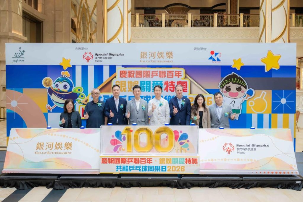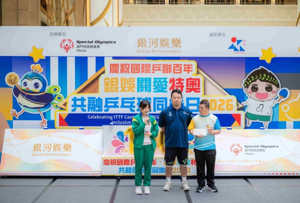 【環球新聞報訊】銀河娛樂集團(下稱「銀娛」)自2011年起,與澳門特殊奧運會(下稱「特奧會」)合辦「銀娛關愛特奧共融乒乓球同樂日」,推廣共融文化。今年適逢「2026年澳門國際乒聯男子及女子世界盃— 由銀河娛樂集團呈獻」(「國際乒聯男女子世界盃」)於3月30日至4月5日在銀河綜藝館盛大舉行,在國際乒乓球聯合會(下稱「國際乒聯」)的支持下,銀娛與特奧會今日舉辦「慶祝國際乒聯百年・銀娛關愛特奧乒乓球同樂日2026」(下稱「同樂日」),吸引近千名參加者踴躍參與。為進一步提升賽事的熾熱氛圍,活動前期亦走訪多家本地學校舉辦共融工作坊,加深青少年對共融理念的認識。