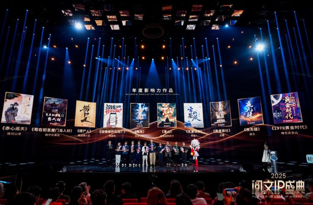 作為盛典重磅榮譽,2025「年度影響力作品」以網路文學界通行十餘年的月票為核心評選依據。《撈屍人》、《苟在初聖魔門當人材》、《沒錢修什麼仙?》、《夜無疆》、《玄鑒仙族》、《異度旅社》、《赤心巡天》、《青山》、《1979黃金時代》及《鳴龍》等十部佳作上榜。這些作品覆蓋懸疑、仙俠、科幻、歷史、現實等多元題材,彰顯閱文內容生態的源頭活力與精品實力。