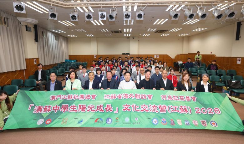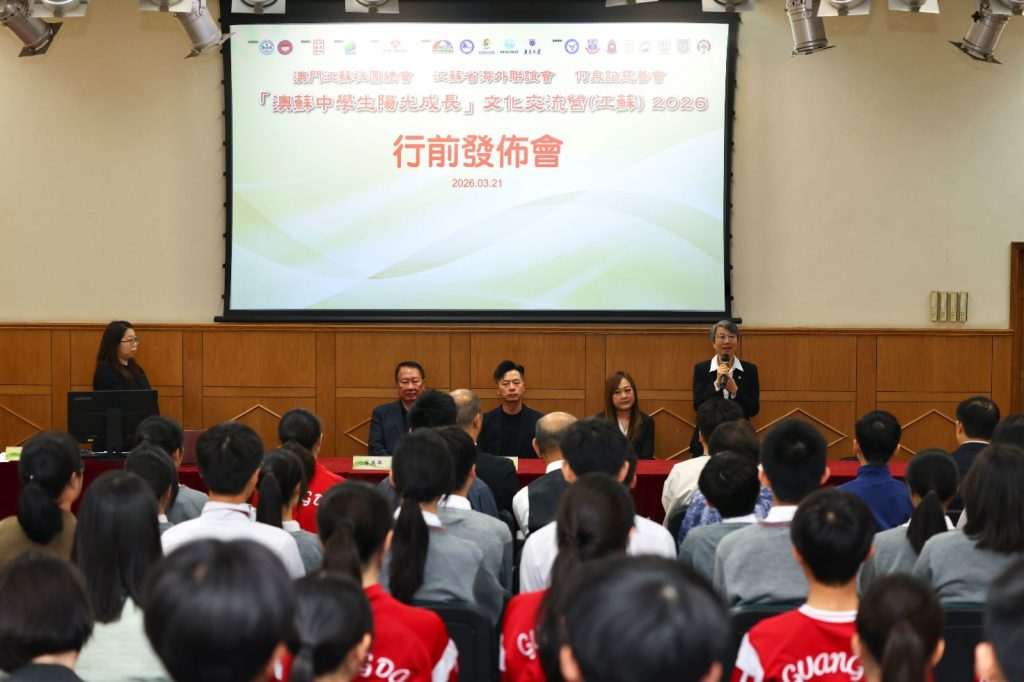 【環球新聞報訊】由澳門江蘇社團總會與江蘇省海外聯誼會聯合主辦、何泉記慈善會贊助的「澳蘇中學生陽光成長」文化交流營(江蘇)2026行前發佈會,日前於鏡平學校(中學部)禮堂舉行。今屆交流營定於2026年4月1日至4月6日在南京與泰州舉行,來自多所澳門中學及江蘇姜堰第二中學共80名師生將參與為期六天五夜的交流。