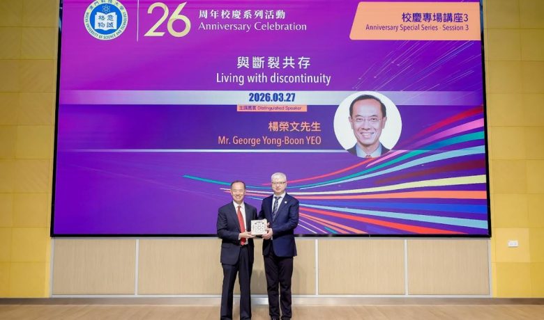 【環球新聞報訊】澳門科技大學26周年校慶系列活動之校慶專場講座3於2026年3月27日上午在澳科大N101大禮堂順利舉行。本場講座邀請到前任新加坡共和國外交部長、新加坡國立大學李光耀公共政策學院訪問學者、亞洲競爭力研究所創始贊助人、香港大學當代中國與世界研究中心傑出非常駐研究員、2026年澳科大榮譽博士楊榮文帶來題為「與斷裂共存」的演講。