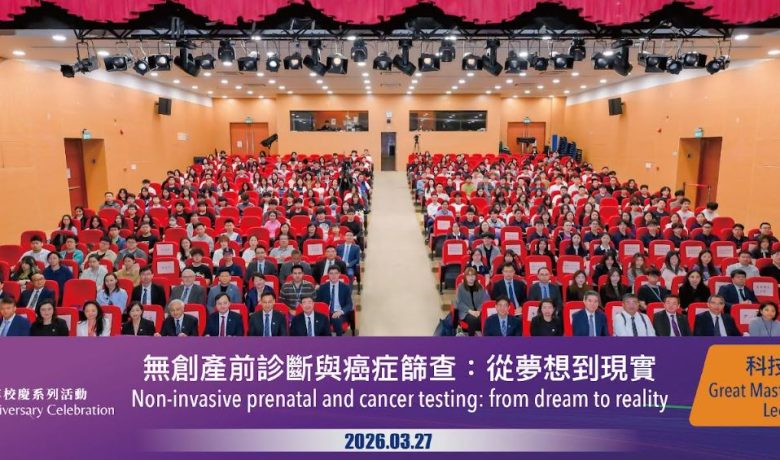 【環球新聞報訊】澳門科技大學26周年校慶系列活動之校慶專場講座2於2026年3月27日上午在澳科大D座禮堂順利舉行。本場講座邀請到中國科學院院士、歐洲科學院外籍院士、香港中文大學校長、香港中文大學李嘉誠醫學講座教授、2026年澳科大榮譽博士盧煜明院士帶來題為「無創產前診斷與癌症篩查:從夢想到現實」的演講。