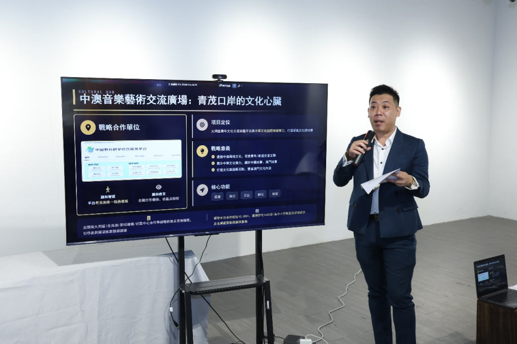 由中國(澳門)非物質文化遺產傳承協會會長文仲雄發布。築牢實體文化載體《中澳音樂藝術交流廣場》項目方案,介紹青茂口岸實體平台建設規劃,定位中澳文化交流樞紐與青年創業孵化器,整合非遺、演藝、培訓、創作資源,為產業發展提供堅實支撐。該項目落戶青茂口岸六樓,致力於打造集展覽、演出、交流、孵化於一體的「永不落幕的文化客廳」與大灣區青年文化交流旗艦平台,並聯動融和智匯、融和教育強大的全國研學網絡,導入穩定客源。