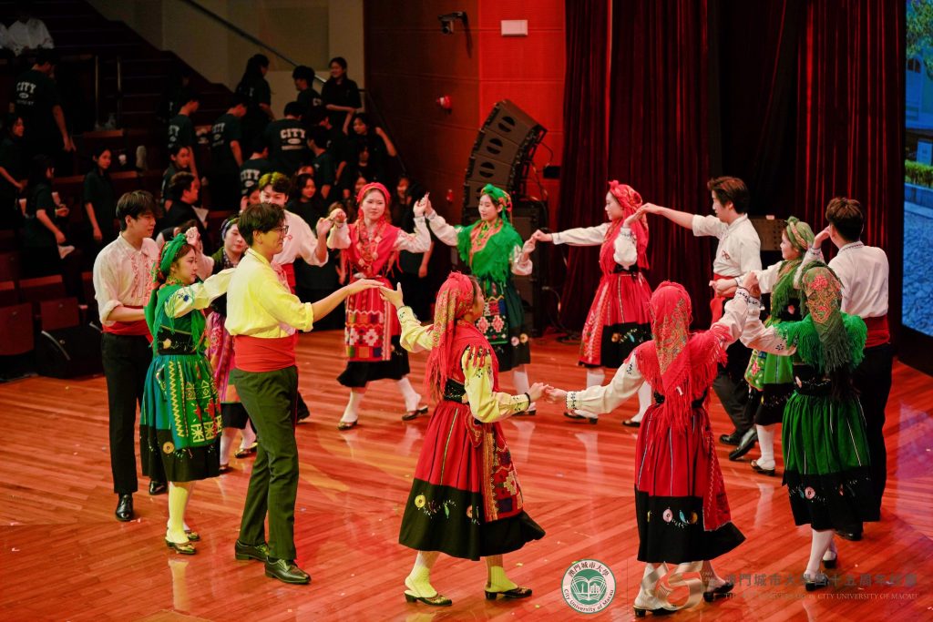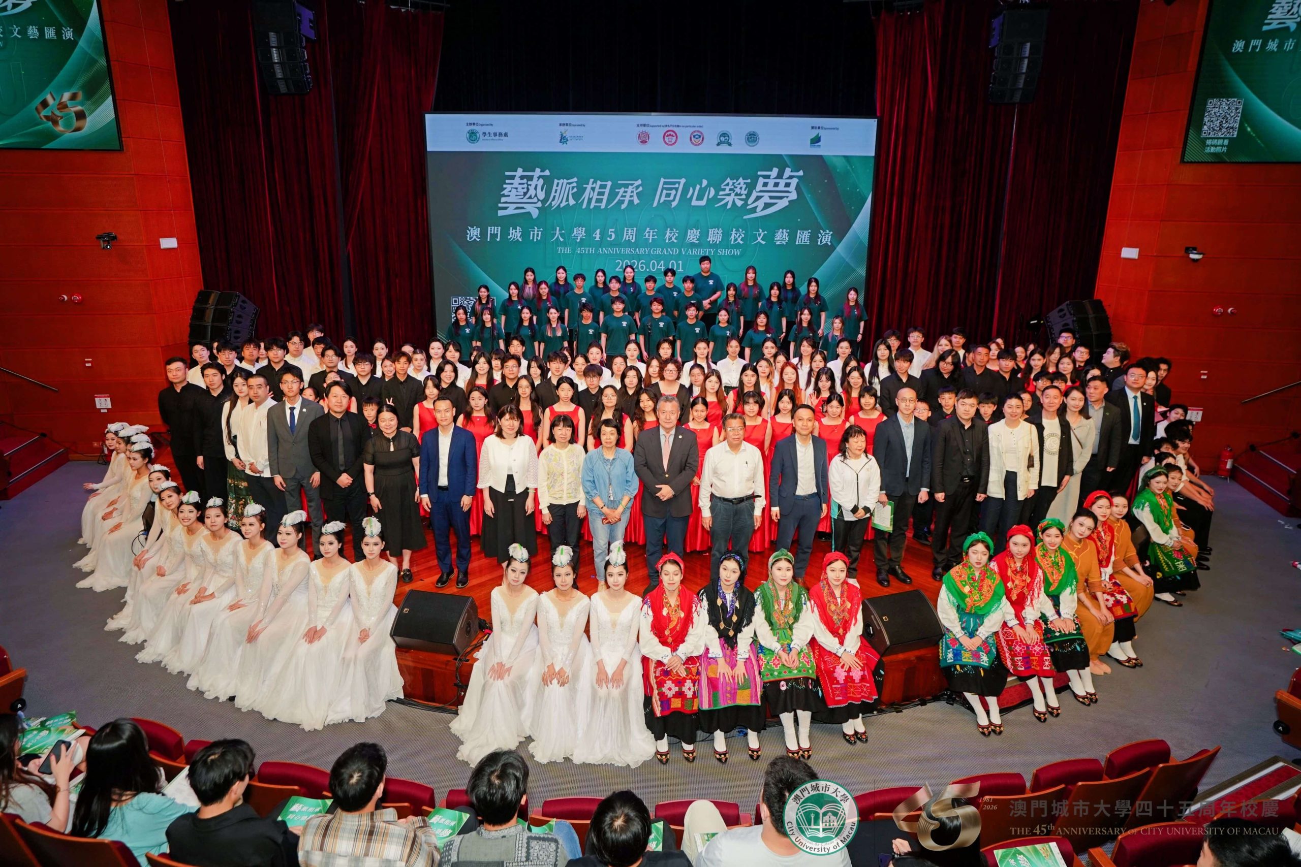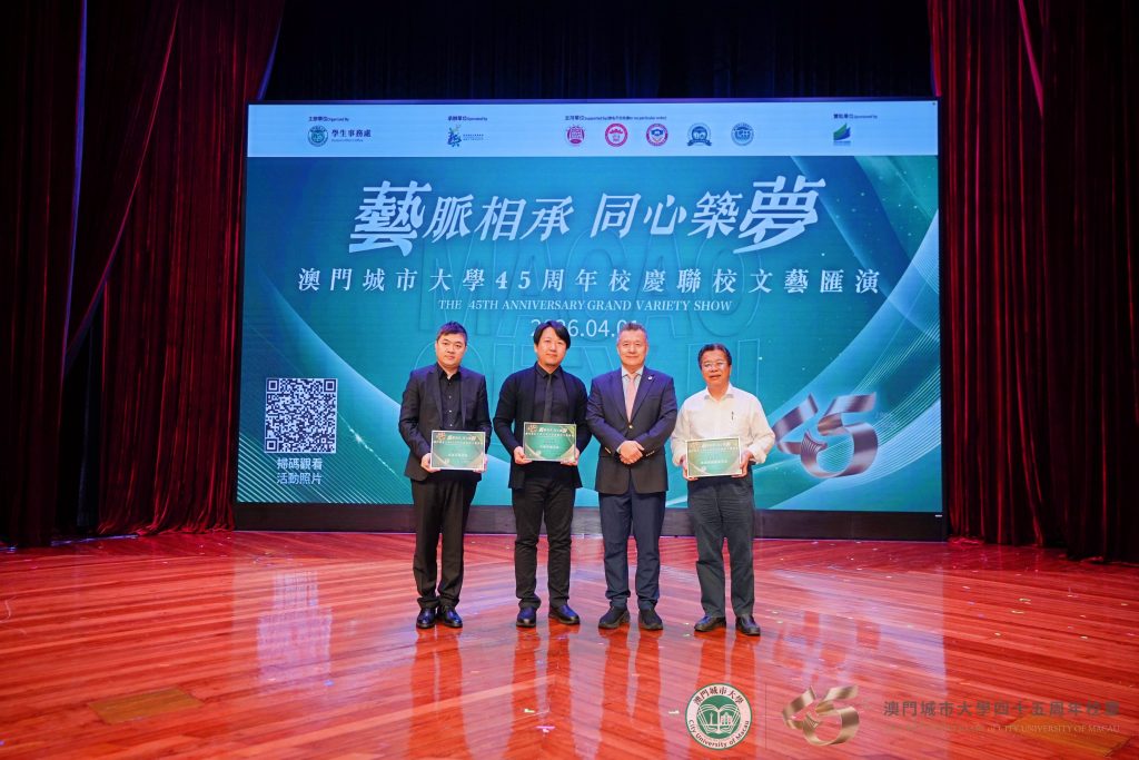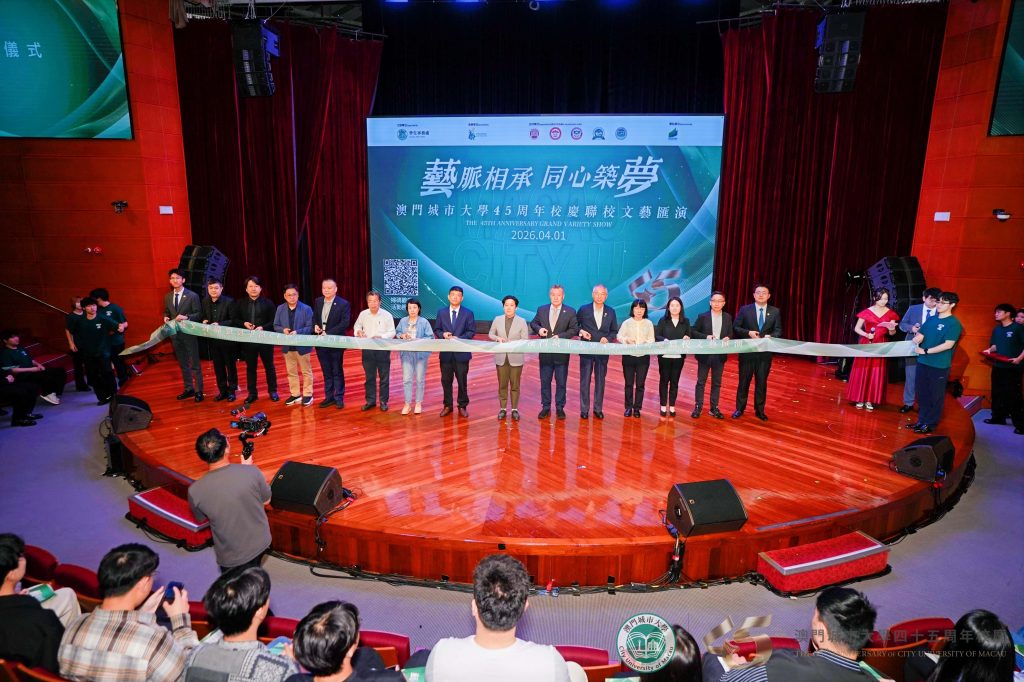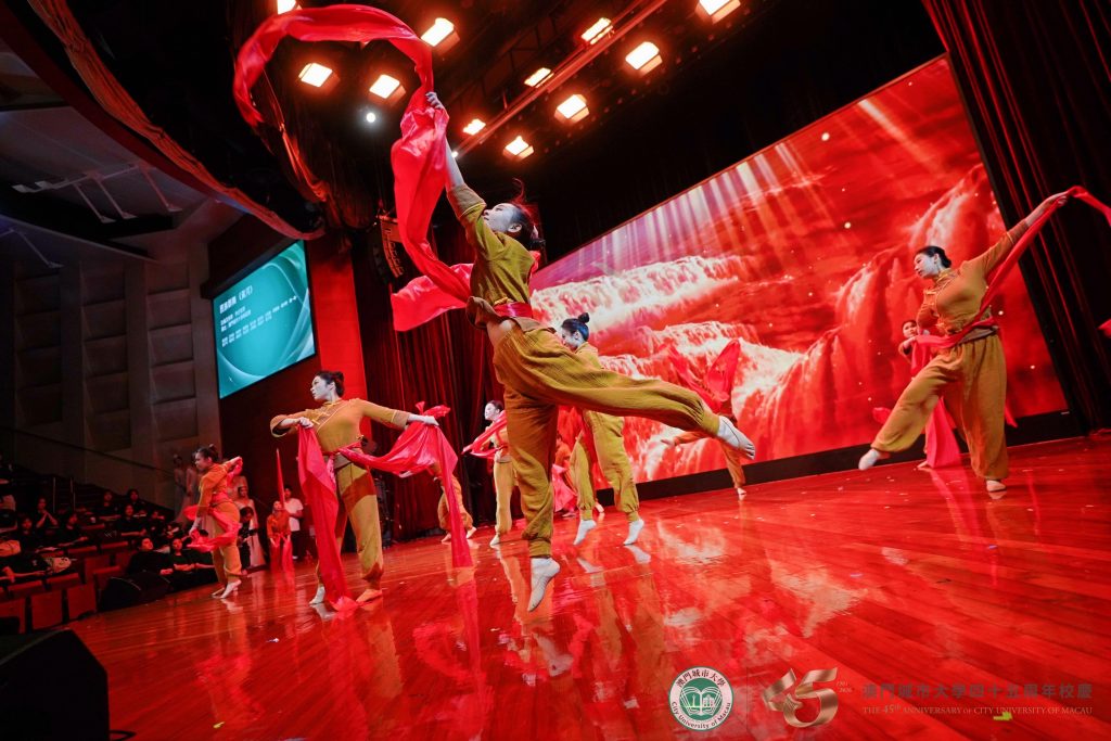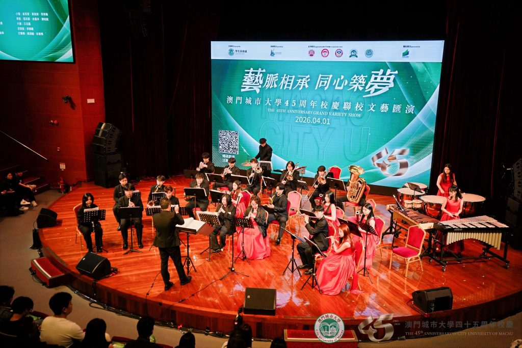 四十五周年校慶聯校文藝匯演以合唱《澳門城市大學校歌》拉開帷幕。為致敬城大四十五載輝煌歷程,校歌特別製作葡語版,並在本次匯演中首次亮相,既彰顯了城大扎根澳門、融匯中西的辦學特色,也唱出了全體城大人對母校的真摯熱愛與美好期許。
