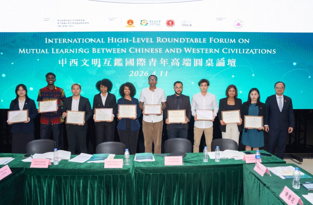 【環球新聞報訊】為深入貫徹國家主席習近平關於文明交流互鑑的重要理念,落實「十五五」規劃對澳門發揮中西文明交流互鑑重要窗口作用的戰略部署,首屆中西文明互鑑國際青年高端圓桌論壇於四月十一日下午三點,在中國與葡語國家貿易合作服務平台綜合體會議廳圓滿舉行。本次論壇由澳門愛國教育青年協會、博士智庫、澳門聖若瑟大學和澳門直播協會合辦,澳門學者同盟支持,博士智庫社會文化諮詢委員會、博士智庫中西文明互鑑諮詢委員會及《博士智庫》期刊承辦,成功匯聚來自十多個經濟體的青年代表,共話文明交融。